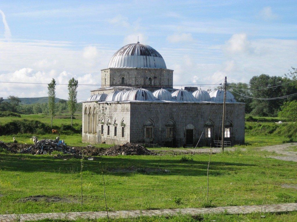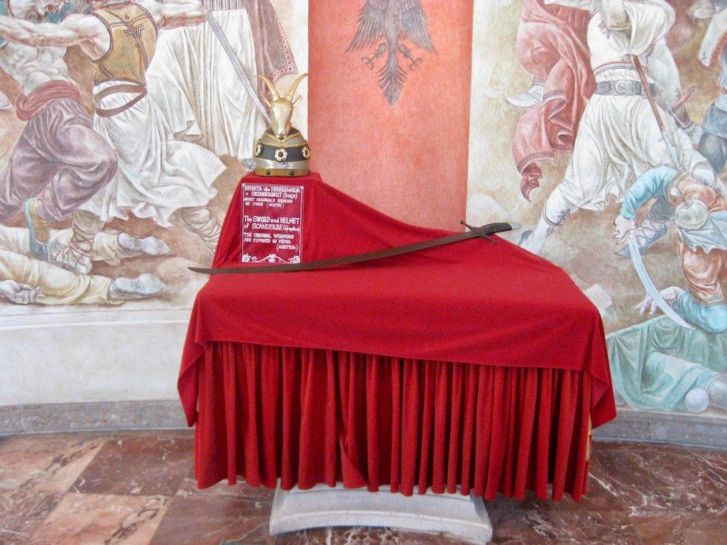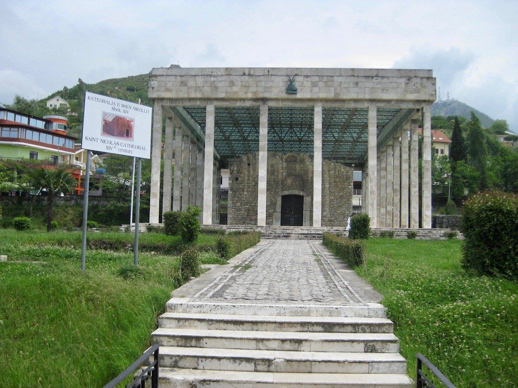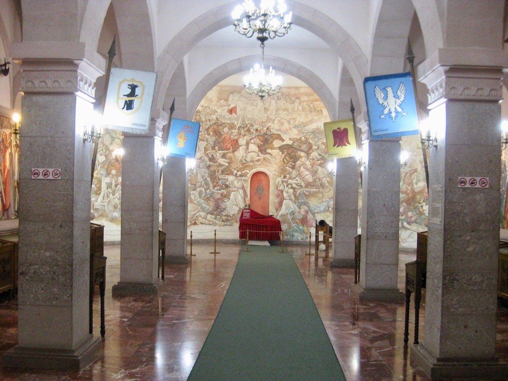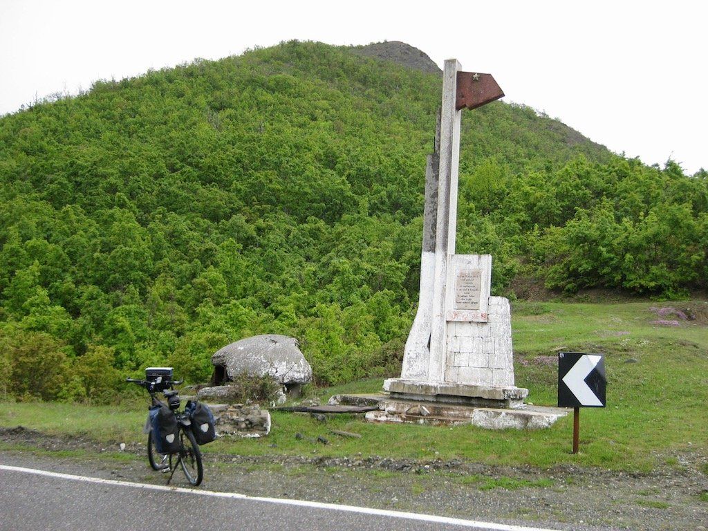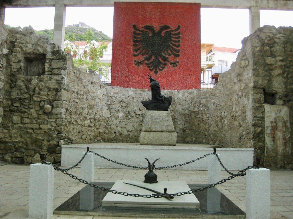 Auf die Schotterpiste habe ich keine Lust, also geht es jetzt über eine Schnellstraße, jetzt aber mit extrem breiten Randstreifen. Hier habe ich Rückenwind und radle mit 30 km/h in Richtung Lehze. In Lehze schaue ich mir das Grabmahl vom Nationalhelden der Albanier, das Shkanderbeg – Grabmal an. Hier werde ich das erste mal von bettelnden Zigeunerkindern belästigt, die aber vom Wachpersonal weggeschickt werden. Das Grabmahl wird extra für mich geöffnet, andere Touristen sind nicht da.
