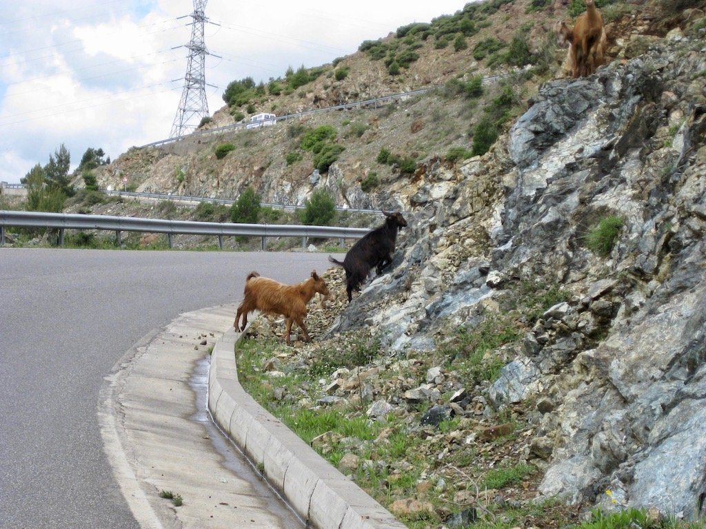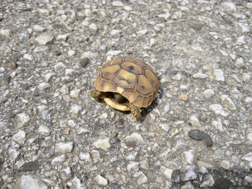 Der Weg weiter geht jetzt steil bergauf. Was ist das denn da auf der Straße ? Ich halte und stelle fest, dass da jemand mit seinem Leben spielt. Ob sie / er es über die Straße geschafft hätte ?