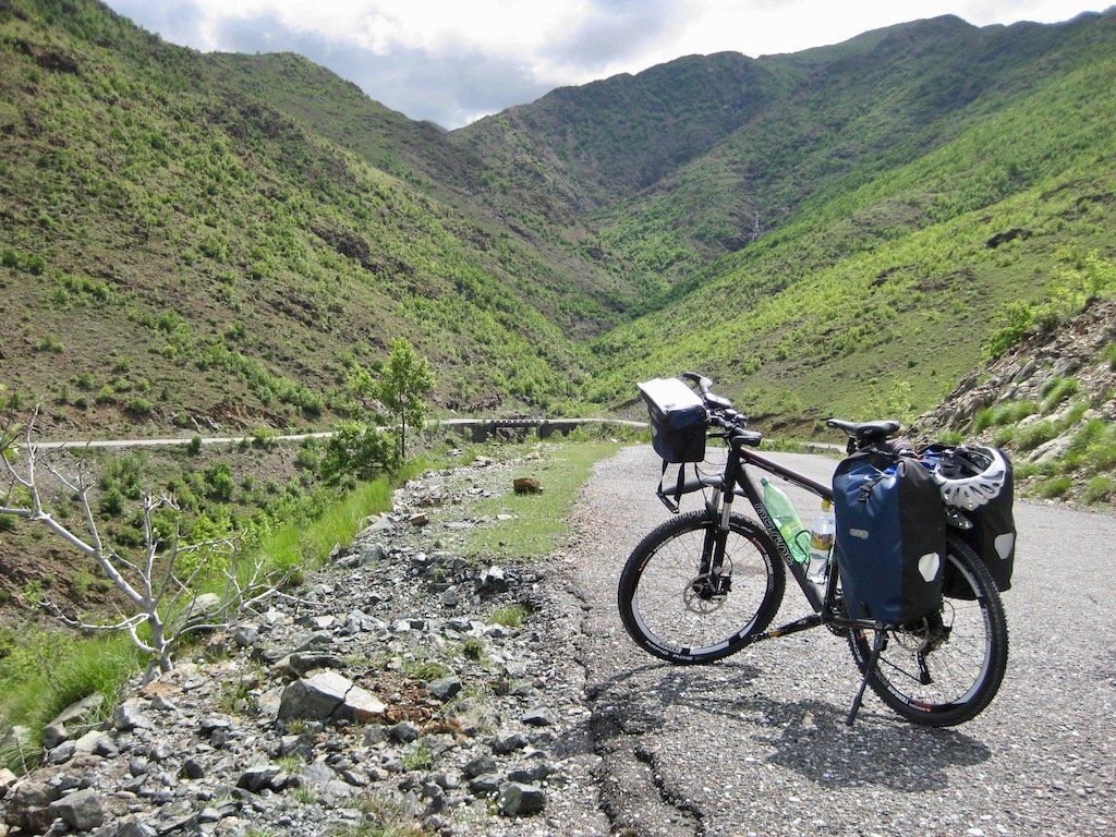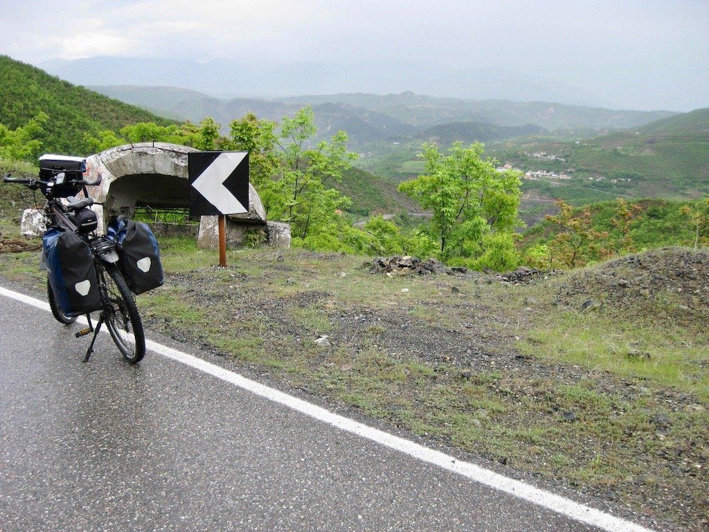 Weiter geht’s. Hoffentlich ohne Panne !!! Ich treffe ein paar Kilometer weiter einen Engländer, der mit unheimlich viel Gepäck sein Fahrrad den Berg raufschiebt. Er teilt mir mit, dass ihm seine Gangschaltung ( Tropedo - 3 Gang - Schaltung ) kaputt gegangen ist und er nur noch auf dem großen Gang fahren kann. Das geht aber nicht den Berg hoch. Er will das Rad in Griechenland reparieren lassen, da es seiner Meinung nach in Albanien nicht geht. Er kommt aus Manchester und will nach China. Das mit dem Fahrrad, na dann viel Spaß. Wer sein Rad liebt der schiebt auch mal !
