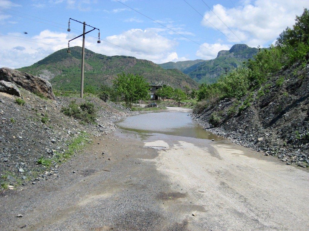 Also geht es jetzt bei tollem Wetter weiter in Richtung Koman. Ich will den Weg über Nebenstrecken fahren. Das geht aber nicht. Schlechte Straßenverhältnisse und immer wieder große Wasserlöcher, hier geht es nicht weiter, ich muss umdrehen. So fahre ich dann knapp 9 Kilometer auf der Hauptstraße in Richtung Süden und biege dann in Richtung Kuke – Koman ab. Hier geht es noch mal 11 Kilometer weiter und dann verlasse ich die Hauptstrecke und fahre in die Berge Richtung Koman. Jetzt geht es erst einmal steil bergauf.
