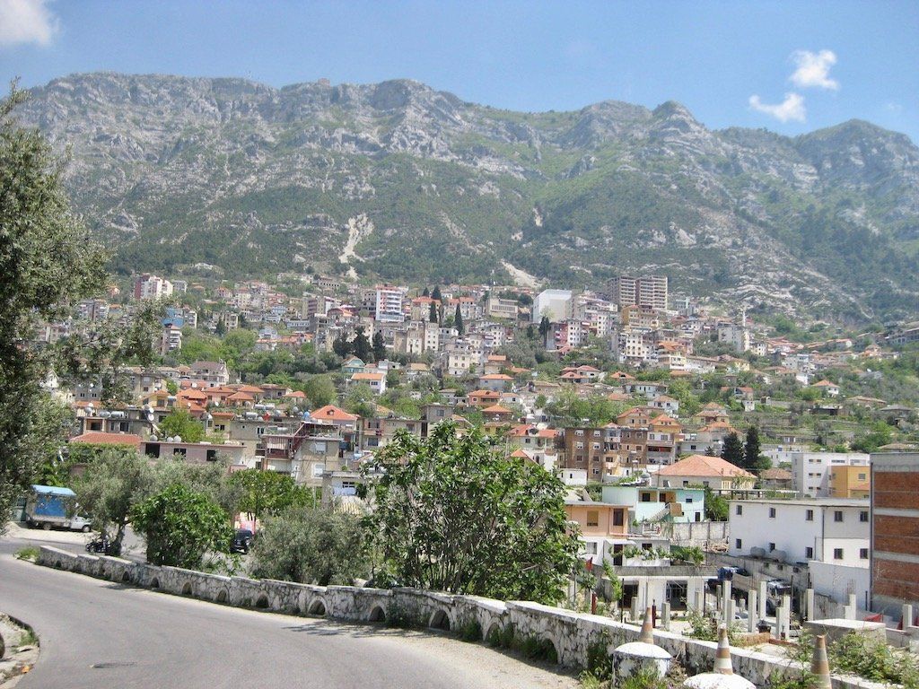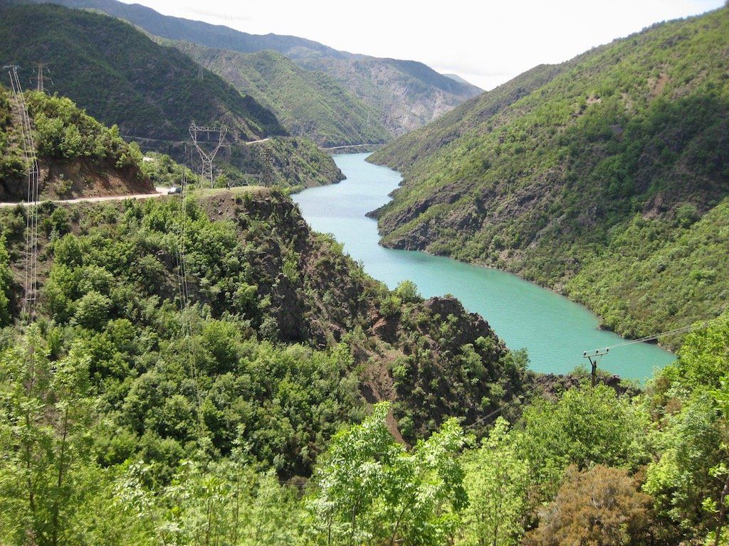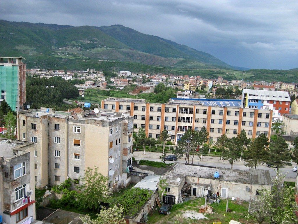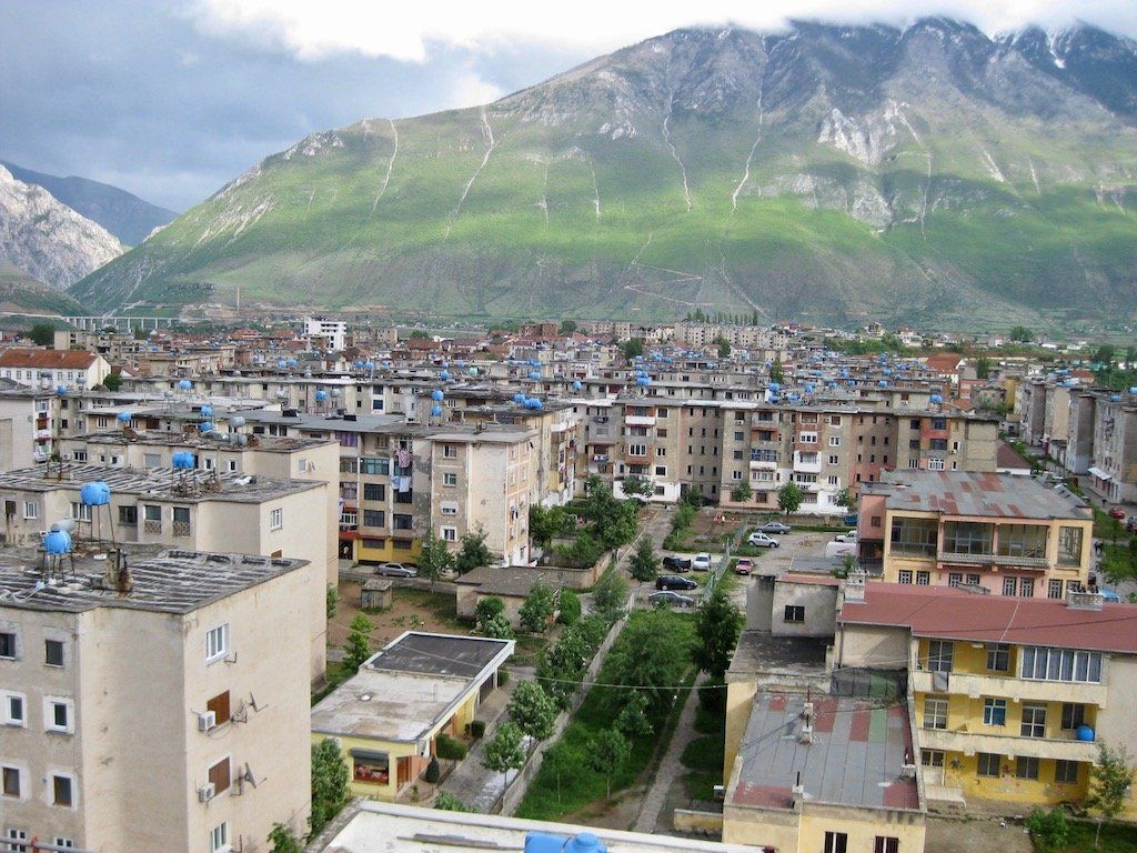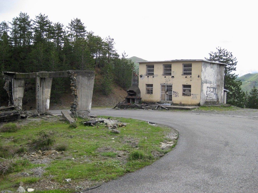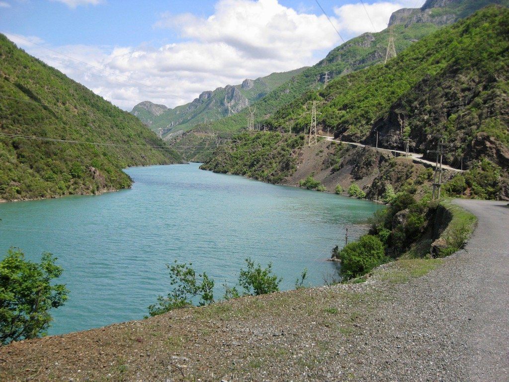 Die letzten Kilometer geht es über die neu gebaute Autobahn mit 6 % Gefälle bergab, bevor ich nach einem letzten Anstieg in Kukes ankomme. Kukes erreichte in Zeiten des Kosovokrieges Berühmtheit, hier waren bis zu 100000 Kriegsflüchtlinge aus dem Kosovo untergebracht. Die Grenze zum Kosovo ist nur ca. 15 Kilometer entfernt. Das alte Kukes ist im Stausee verschwunden, das neue Kukes wurde oberhalb des Stausees in typisch kommunistischer Form mit Plattenbauten wieder aufgebaut und hat so ca. 16000 Einwohner. Einfach nur eine hässliche Stadt in wunderschöner Gegend ! Ich steige im Hotel Amerika ab. Es ist wohl eines der moderneren Gebäude in Kukes. Jetzt erst mal raus aus den nassen Sachen und unter die heiße Dusche. Vor dem Abendessen noch eine Runde durch die Stadt, bevor es wieder zu regnen anfängt. Einen Absacker in der Hotelbar und dann zeitig ins Bett, morgen kommt der Tag mit den meisten Höhenmetern !