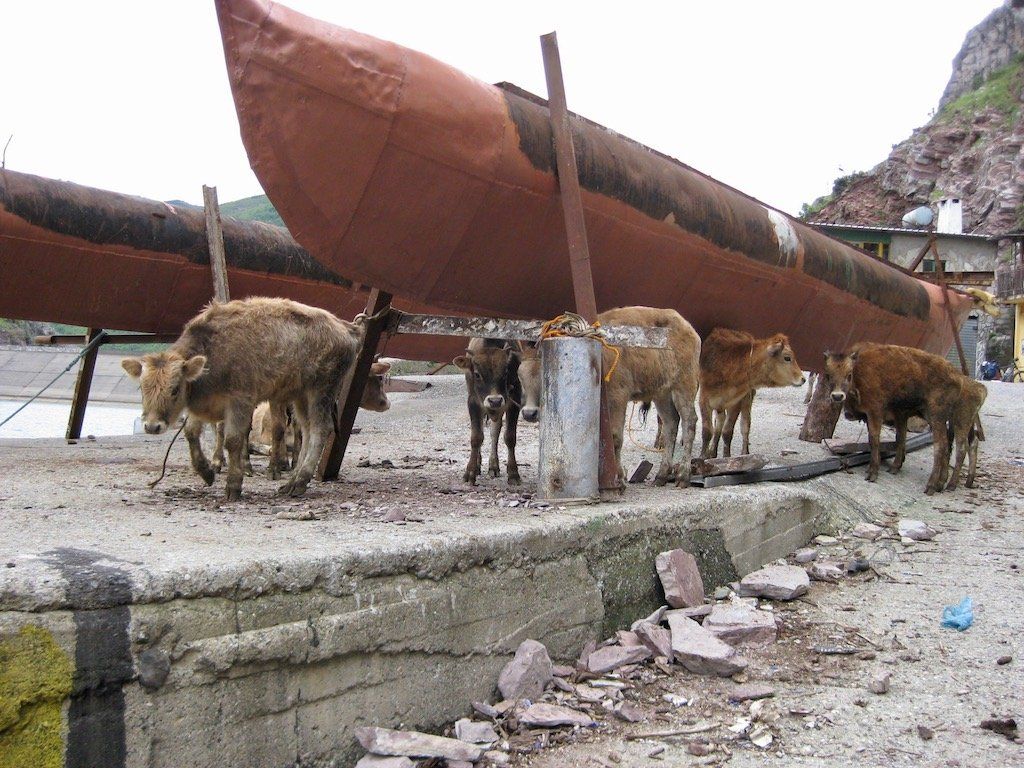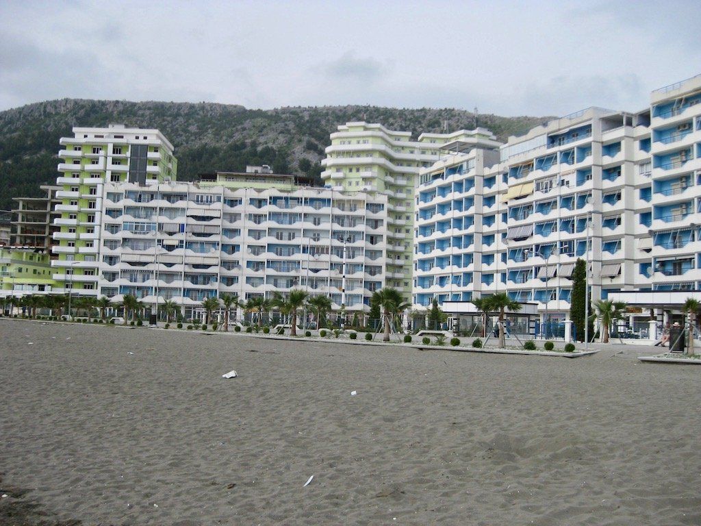 Da Lehze nicht allzuviel zu bieten hat, entschließe ich mich, zwecks Übernachtung wieder die Küste aufzusuchen. Dahin sind es nur ein paar Kilometer und so mache ich mich auf den Weg nach Shengjin. Ich radle nicht in China, der Ort heißt wirklich so. Auf dem Weg dorthin merke ich, dass der Hinterreifen wieder schwammig wird und Luft verliert. Das darf doch nicht wahr sein, der dritte Plattfuß. Mit der letzten Luft im Reifen erreiche ich Shengjin. Dort checke ich im Hotel President ein. Die ganze Küste ist von Plattenbauten zubetoniert. Schöne Urlaubsorte sehen anders aus.