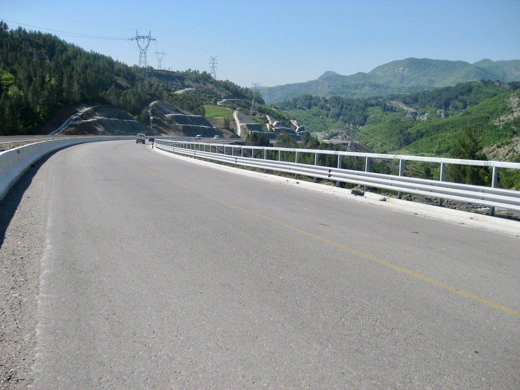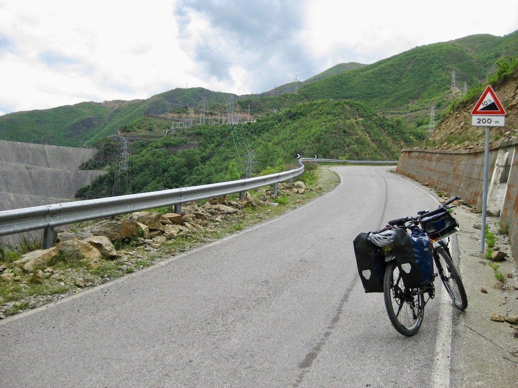 Um 07.00 Uhr gibt’s Frühstück im Speisesaal. Ich bin, zumindest um diese Uhrzeit der einzige Gast. Vor dem Hotel mache ich mit einem Wasserschlauch erst einmal das Rad sauber. Das war bitter nötig, da es nach dem gestrigen Tag und der Fahrt über die nasse Schotterpiste nicht mehr wieder zu erkennen war. Mit einem jetzt doch wieder sauberen Rad und geölter Kette geht es um acht Uhr Richtung Tirana. Unterwegs in der Stadt noch einmal die Wasservorräte aufgefüllt. Ich halte dann an einer Tankstelle und erkundige mich nach dem Weg in Richtung Krraba – Pass. Hier rät man mir vom Pass ab, da dieser extrem steil sein soll. Das ist mir auch bekannt ! Aber eine andere Alternative ist mir nicht bekannt. Man sagt mir dann, dass ich die neue Schnellstraße ( Autobahn noch im Bau, aber schon befahrbar) mit dem neuen Tunnel fahren kann. Ich habe so meine Bedenken ob das mit der Fahrt durch den Tunnel gut geht. Man versichert mir, dass ich die neue Straße fahren kann und ich auch durch den Tunnel käme. O.K. ich versuche es, mehr als umdrehen kann mir nicht passieren und dann kann ich immer noch den Pass in Angriff nehmen. Auf dem breiten Randstreifen fahre ich die neue Straße entlang. Sie zieht sich stetig und ganz schön lang nach oben.
