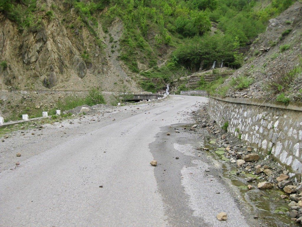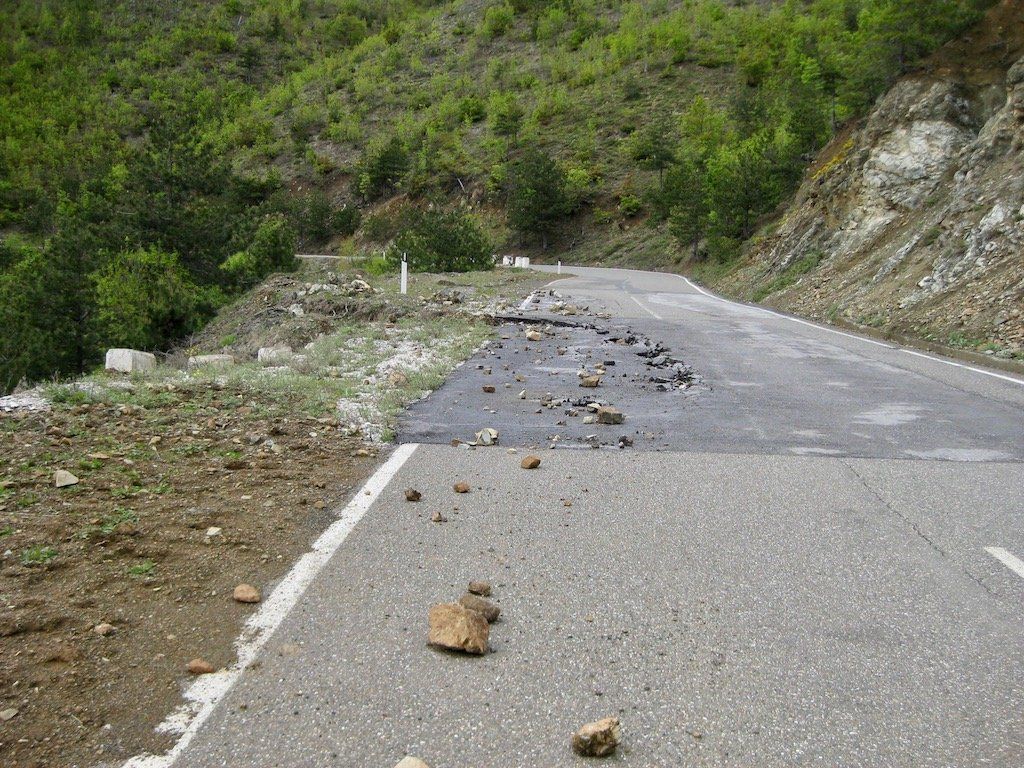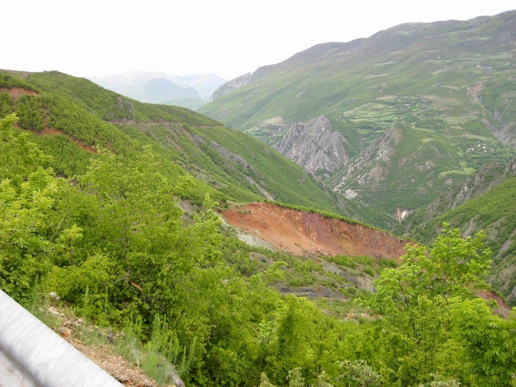 Es folgen lange steile Anstiege und Abfahrten. Unterwegs extrem starke Bodenerosionen. Nach ca. 32 Kilometern lege ich eine Pause vor einem weiteren heftigen Anstieg ein. Ein Ortseingangsschild ist nicht erkennbar und so frage ich in einem Cafe nach, wo ich mich befinde. Man teilt mir mit, dass ich mich in dem Ort Bushtrice befinde. Bei einem Blick in die Karte erschrecke ich. Ich bin ganz schön von meinem Weg abgekommen und habe offensichtlich eine Abfahrt verpasst. Jetzt ist guter Rat teuer. Man sagt mir, dass der Weg, der von hier aus nach Peshkopi weiterführt, extrem steil und schwer ist. Das würde wohl meine Kräfte überfordern. Das gleiche wäre wohl mit dem Weg zurück bis zum Abzweig und von dort aus weiter. Man bietet mir an, das man mich gegen einen Unkostenbeitrag mit dem Auto nach Peshkopi bringt. Nach einigen Überlegungen siegt der Verstand und ich lasse mich bis nach Peshkopi bringen. Der Fahrer bringt mich dann über den Weg geradeaus weiter nach Peshkopi. Während der Fahrt wird mir bewusst, das ich die Berge mit den Anstiegen an dem Tag nicht mehr geschafft hätte. Also war die Entscheidung genau die richtige, zumal ich nach knapp 32 Km schon über 750 Höhenmeter hinter mir hatte und mit Rückweg noch über 70 Kilometer vor mir gehabt hätte. An die Höhenmeter denke ich mal lieber nicht. Selbst die Autofahrt dauerte fast 1,5 Stunden durch die Berge. Man, was hatte ich mich verfahren !