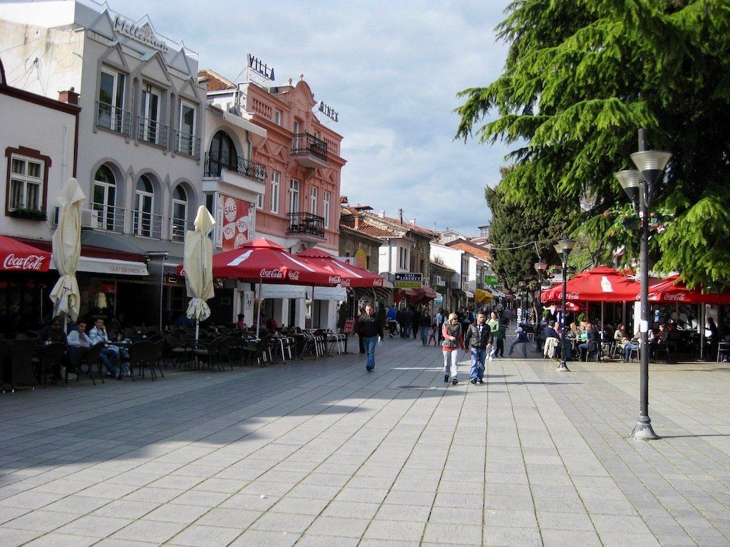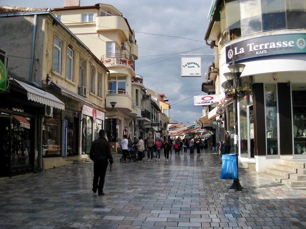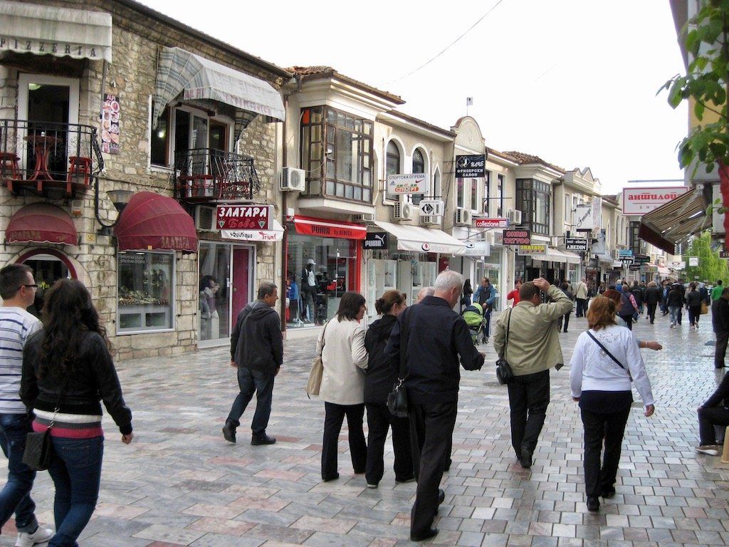 Nun geht’s am See entlang in Richtung Ohrid. Durch die schöne Fußgängerzone schiebe ich das Rad !