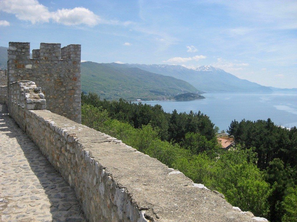 Gegen Mittag mache ich mich auf den Weg zur Burg. Hier geht es steil bergauf und ist bei der Sonne nur mit viel Schwitzen zu bewältigen. Ich habe ja den ganzen Tag Zeit und kehre mal wieder zu einem Espresso ein. Hier komme ich auch mit Einheimischen ins Gespräch, die mir von der extrem hohen Arbeitslosigkeit und dem Abwandern der jungen Leute erzählen. Dann geht’s zur Burgbesichtigung mit einem tollen Blick auf den See und die Umgebung.