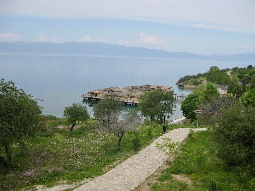 15 Kilometer vor meinem heutigen Tagesziel Pogradec merke ich, wie mein Hinterrad langsam Luft verliert. So ein Mist. Ich pumpe das Hinterrad mehrfach auf, da ich keine Lust habe, hier in der Pampa das Rad auszubauen und den Schlauch zu wechseln. Trotzdem radle ich noch zum Kloster Sv. Naum. Hier ist alles extrem touristisch durchorganisiert. Das Rad stelle ich am kleinen Hafen des Klosters ab und ich mach mich zur Besichtigung auf.