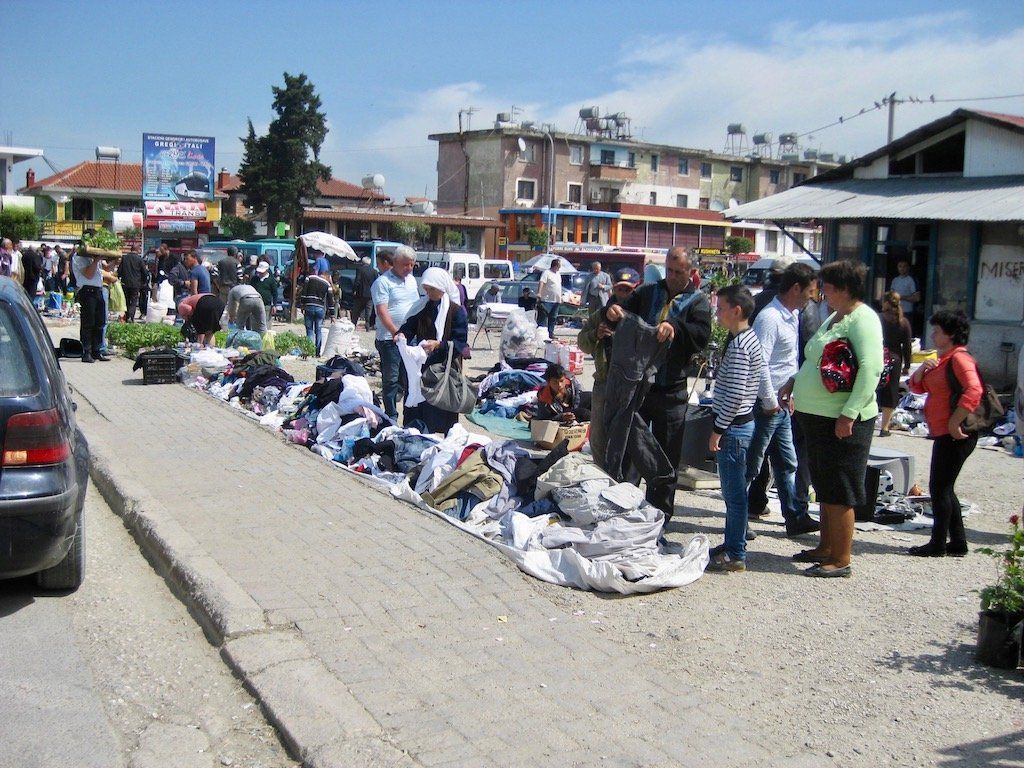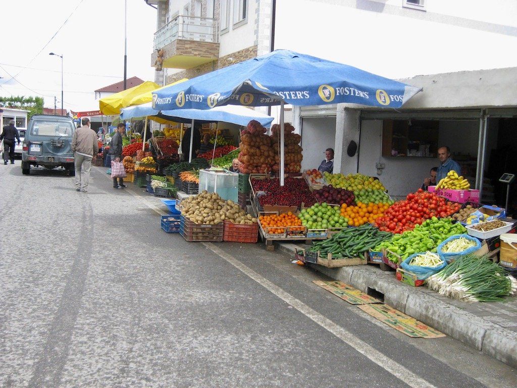 Vor der Weiterfahrt wieder aufpumpen und es geht Richtung Grenze. Pogradec erreiche ich trotz mehrmaligem Aufpumpen mit einem extrem schwammigen Hinterreifen. Ich eiere mehr als ich fahre. Da ich entgegen der Einbahnstraße am Rand fahre, muss ich auch noch auf die Straßensperren für Falschfahrer aufpassen.