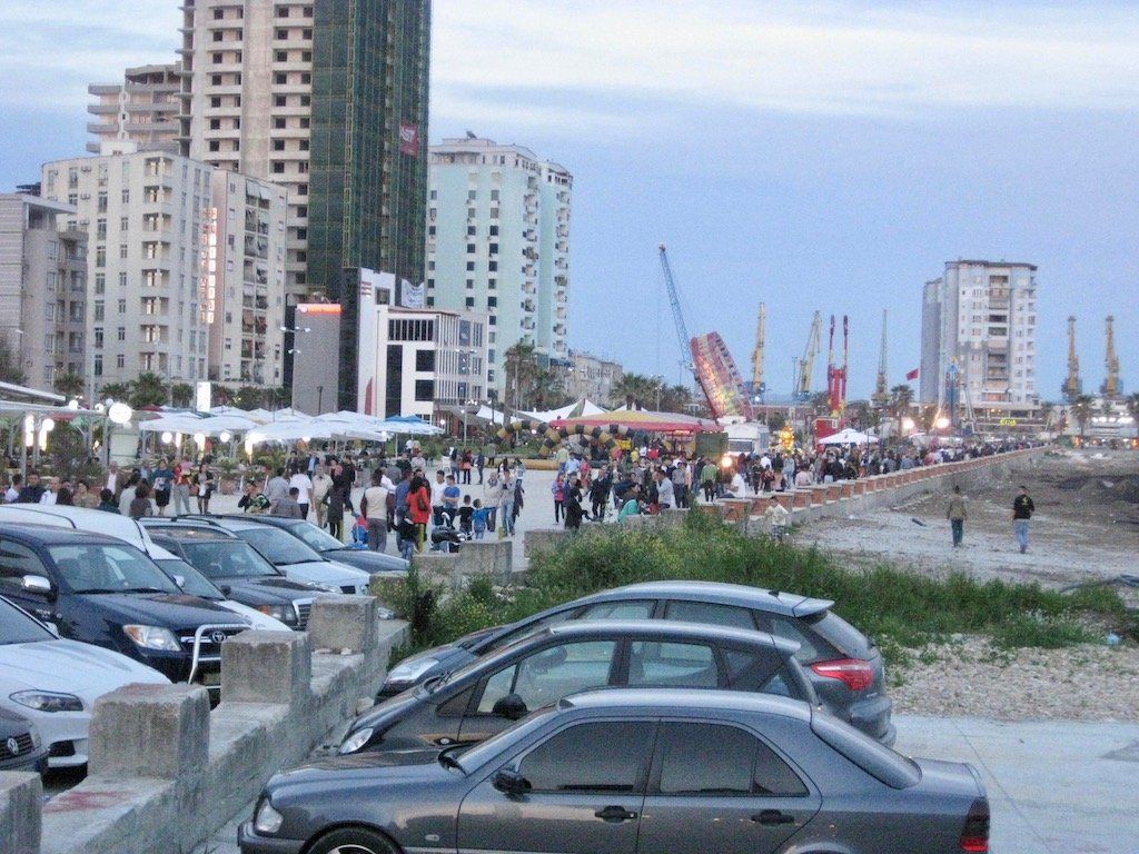 Wenn man bedenkt, dass in Albanien bis Anfang der 90er Jahre kein privater Autoverkehr erlaubt war, haben sie ganz schön aufgeholt. Auf dem Skanderbegplatz soll man früher sogar die Vögel zwitschern gehört haben. Pünktlich zum Abendessen bin ich wieder im Hotel. Es gab eine phantastische Antipasti – Platte. Im dunkeln den gleichen Fußmarsch noch einmal durch das abendliche Tirana. Danach habe ich noch mit dem Hotelbesitzer bei einem Bier über das aufstrebende Albanien diskutiert. Es wurde ein noch recht langer Abend !