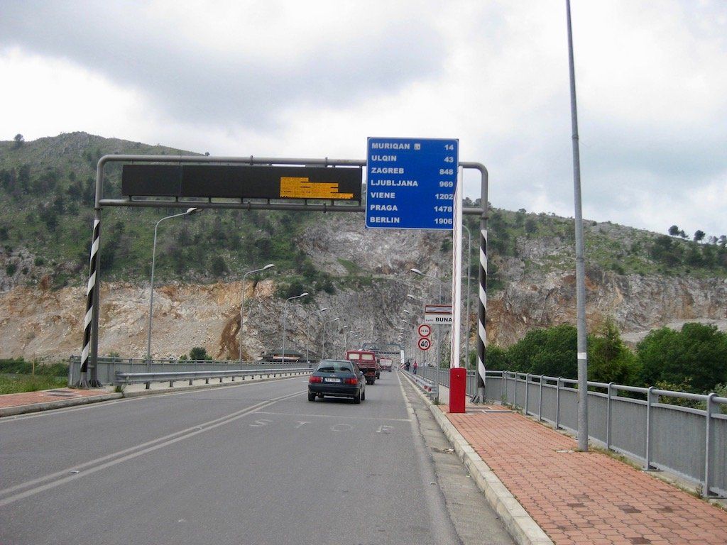 Entlang des Skhodrasees erreiche ich nach 1,5 Stunden die Grenze nach Albanien. Nach einem kurzen Einblick in den Pass und einem Einreisestempel fragt mich der Grenzbeamte grinsend, ob mir das bei dem Regen Spaß macht, worauf ich ihm grinsend sage: Ist doch nur Wasser und trocknet wieder. Man winkt mir noch nach und ich mache mich bei weiterhin starkem Regen auf den Weg nach Skhodra. Große Pausen lege ich nicht ein, nur kurze Trinkpausen unterbrechen meine Fahrt.