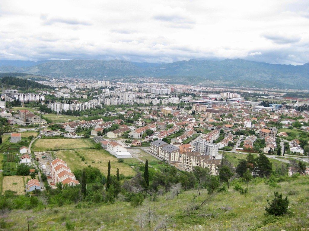Nach dem Frühstück verlege ich in mein Anfangs / Endhotel, Hotel „ M „ Es hat wieder leicht angefangen zu regnen, ich komme aber noch einigermaßen trocken dort an. Ich muss einmal quer durch die Stadt. Das Zimmer ist noch nicht frei, also warte ich eine Stunde im Aufenthaltsraum bei einem Espresso. Man ist aber sehr bemüht und ich bekomme dann doch sehr schnell mein Zimmer. Da ich jetzt noch einen Tag länger Zeit habe, will ich mir die Gegend um Podgorica noch ein wenig anschauen. Also ohne großes Gepäck, nur mit eine Lenkertasche geht’s los. Es ist trocken. Zunächst fahre ich zum Fernsehturm, der liegt ganz in der Nähe meines Hotels, hier hat man einen tollen Überblick über die Stadt.