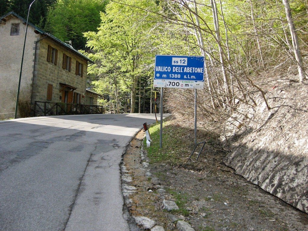 Nach einem sehr kargen Frühstück ( Italien eben ! ) brechen wir um 7.15 auf. Wie wir gestern Abend schon gesehen haben, geht es die nächsten 10 Kilometer mit bis zu 10 % Steigung nach Abetone hoch. Es ist zwar noch recht kühl, aber wir kommen trotzdem ganz schön ins Schwitzen. Nach 1,20 Stunden haben wir die Passhöhe erreicht.
