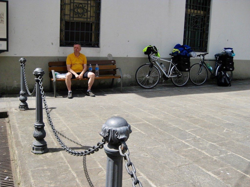 Nach einem Anruf in der Nacht von zu Hause müssen wir die Tour abbrechen. Wir schauen noch in der Nacht nach, wie wir am schnellsten von Volterra nach Maranello zurück kommen. Wir brechen dann am Morgen mit den Rädern zum nächsten Bahnhof auf. Über Florenz und Bologna geht es nach Modena. Dort angekommen müssen wir dann die letzten 20 Kilometer bis nach Maranello radeln. Am Abend gegen 19 Uhr erreichen wir dann wieder Maranello. Wir packen schon die Sachen für morgen ins Auto und gehen noch Essen.