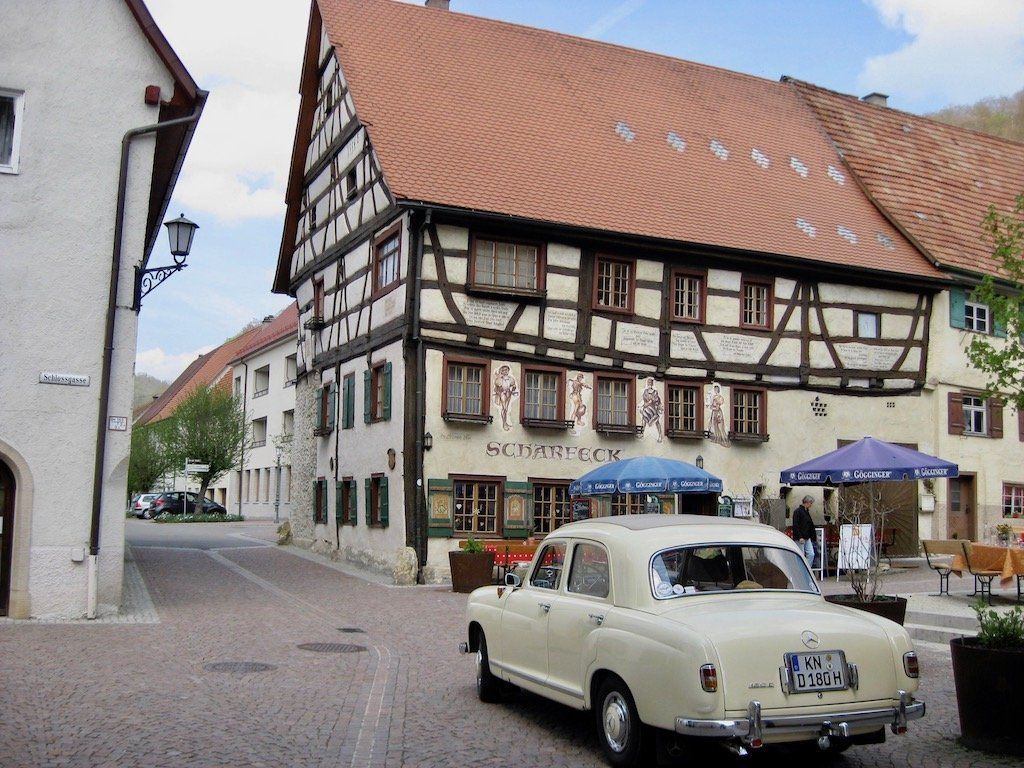 Frühstücken können wir im Hotel Pelikan. Die Räder hatten wir schon gepackt mitgenommen. Um kurz nach 8 Uhr brechen wir auf. Während der Fahrt meint Hans, das er heute nicht so gut drauf ist, also etwas langsamer, zumal der Gegenwind wieder da ist. Gegen 10.45 Uhr sind wir in Sigmaringen, hier besichtige ich erst einmal dass Schloss, Hans will nicht mit rein, er wartet draußen bei den Rädern. Nach 1 Stunde bin ich dann auch wieder da und im Schloßcafe gibt es erst einmal Kaffee & Kuchen. Unser gestecktes Etappenziel erreichen wir heute nicht, wir beschließen, in Riedlingen für heute Schluss zu machen, zumal es sich zuzieht. Wir steigen im Gasthaus " Zum Hirschen " ab. Es gibt dann doch noch ein Bier im Ort, bevor wir zum Abendessen gehen. Als wir dann nach dem Abendessen noch eine Runde durch den Ort drehen wollen, fängt es an zu tröpfeln, also geht es zurück zum Quartier. Hoffentlich ist es morgen wieder trocken.