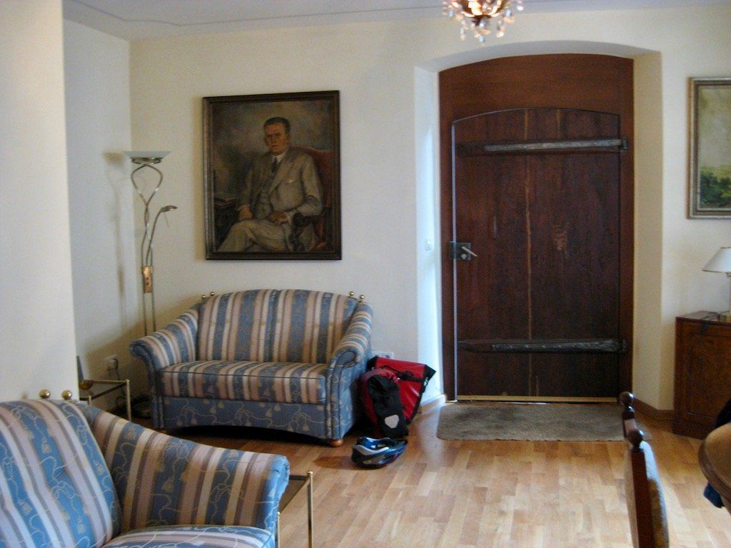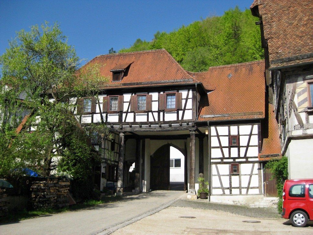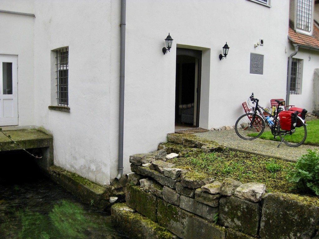 Wir entschließen uns dann die Alternativroute über das Blautal mit dem " Blautopf " zu fahren. Wir beenden den Tag dann in Allmendingen. Am Ortseingang wird uns ein Zimmer im Sportlerheim angeboten. Das nehmen wir nicht, also weiter suchen. Wir stoßen dann auf die Schloßmühle. Hier erhalten wir ein tolles, neu renoviertes altertümliches Zimmer. Draußen fängt es wieder an zu regnen, also erst einmal die Kehle anfeuchten, es gibt ein Bier. Das Abendessen nehmen wir in der Schloßmühle ein, die Bewirtung erfolgt durch den Freiherr und die Gräfin. Um Mitternacht meldet sich Sigrid aus New York und teilt mit, dass sie gut angekommen sind.