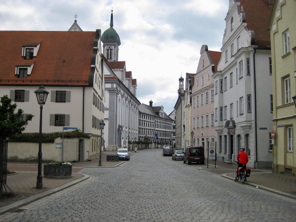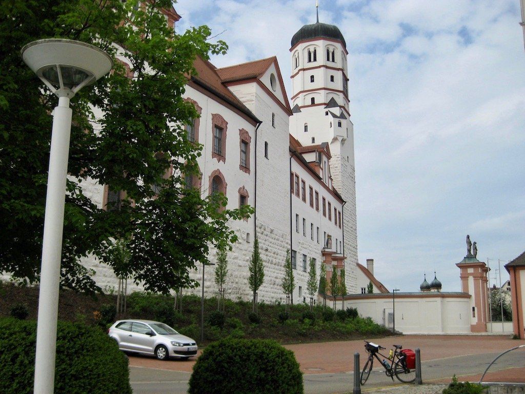 Nach der Außenbesichtigung von Schloss Lauingen geht es weiter nach Dillingen und über Höchstadt nach Donauwörth. Wir schieben die Räder durch die Altstadt. Es zieht wieder zu, deshalb machen wir uns wieder auf den Weg. Es geht auf und ab.