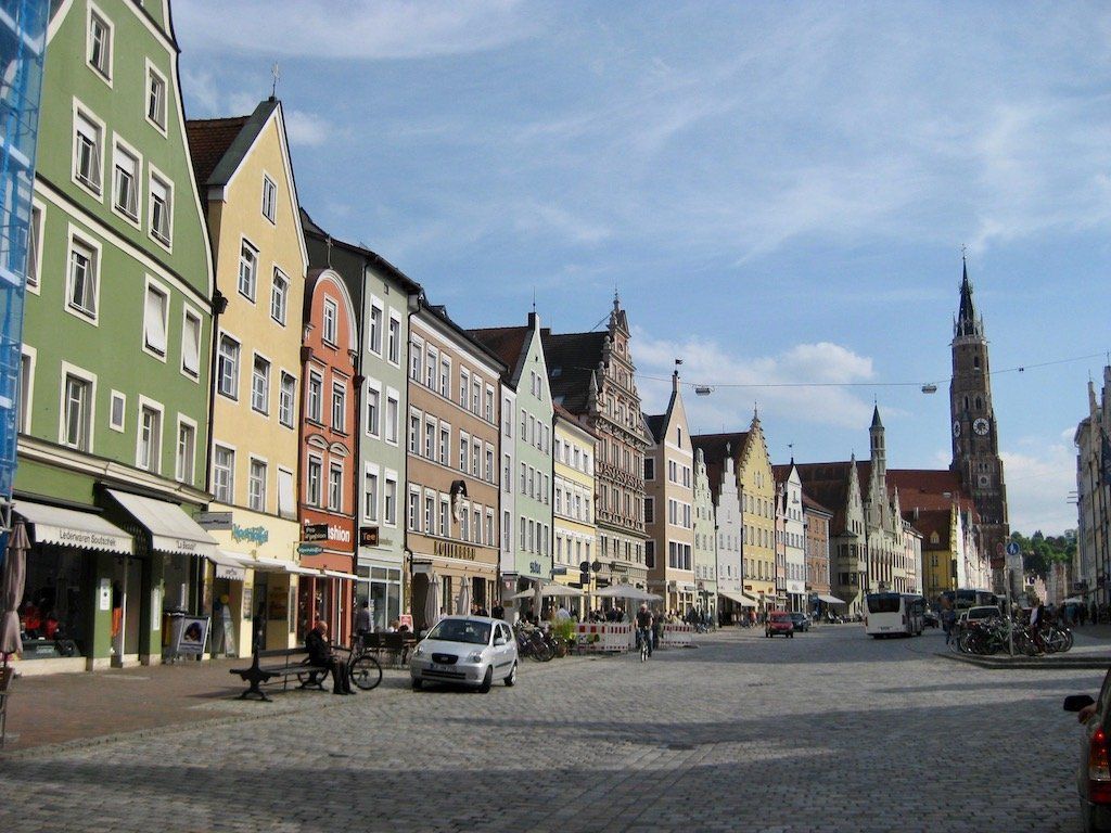 Zur Abfahrt haben wir fast blauen Himmel und endlich mal wieder Sonne. Den Einstieg in den Isarradweg finden wir schnell. Die ersten Kilometer verlaufen gut. In Dingolfing gibt es zu Mittag erst einmal eine Kaffee & eine Waffel bei Tchibo. Als wir uns dann wieder auf den Isarradweg in Richtung Landshut machen, stellen wir fest, dass dieser in einem katastrophalen Zustand ist, es ist eher ein Feldweg. Steine und ziemlich weich, einfach nur schlecht zu fahren. 5 Kilometer vor Landshut gibt es dan bei einem Italiener erst einmal Bruchetta und ein Radler. In Landshut ist der erste Eindruck sehr gut. Sehr schöne Stadt. Das erste Quartier liegt über einem Erotikshop und sieht nicht gut aus. Wir schellen erst gar nicht an. Wir kommen dann in der " Weinstube Heigl " unter. Eher ein italienisches Restaurant. Auf Schellen öffnet " italienische Mama ". Wir nehmen das Zimmer, Zentrumsnah, aber nichts besonderes. Wir haben beschlossen, 2 Tage in Landshut zu bleiben, dafür reicht das Zimmer. Nach einem Rundgang durch den Ort machen wir uns zum Bahnhof auf, mal schauen wo der liegt und wann die Abfahrtzeiten sind. Man was liegt der Bahnhof weit draußen. Als wir nach dem sehr üppigen Abendessen wieder in der Pension sind, fängt es wieder an zu regnen.