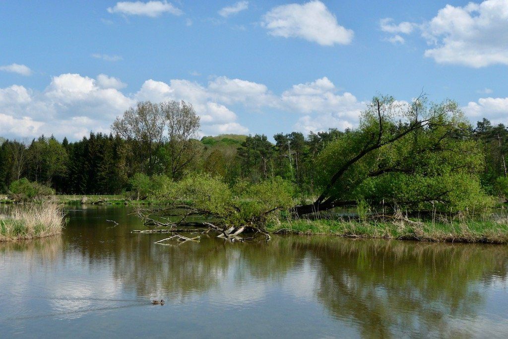Ich stehe um 6 Uhr auf. Duschen und noch frühstücken. Dann schnell die letzten Sachen zusammen packen und schon gehts auf den Weg zum Bahnhof. Hans wartet schon. Es ist auch noch der ADFC aus Lünen da, hoffentlich passen wir alle in den Zug nach Düsseldorf. Es klappt. Das mit dem Umsteigen klappt super, es gibt einen Gepäckwagen. In Heidelberg haben wir 5 Minuten Verspätung. In den Aufzug, rauf und auf der anderen Seite wieder runter, da kommt auch schon der nächste Zug. 50 Minuten Fahrzeit bis Karlsruhe. Hier wieder Umsteigen. Auf dem Weg nach Donaueschingen fängt es jetzt zu regnen an. Es geht immer höher in den Schwarzwald. Um 15.13 Uhr treffen wir in Donaueschingen ein. Es ist überwiegend trocken, nur ab und zu fallen ein paar Tropfen. Wir fahren in den Ort, die Donauquelle wird gerade renoviert. Dann brechen wir über Bräunlingen nach Unterbränd auf. Hier haben wir ein Quartier für die erste Nacht. Hinter Bräunlingen geht es zunächst aber ganz schön hoch, bis auf 856 Meter, der Schwarzwald halt. Nach den Abendessen geht es noch zu einem kleinen Sparziergang zum Kirnbergsee.