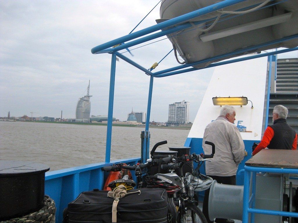Wir reisen mit dem Zug an. Abfahrt in Dortmund um 06.26 Uhr. Die Fahrt verlief problemlos. Ankunft in Bremerhaven ist um 09.26 Uhr. Im Bahnhof gibt es zunächst einen Kaffee. Wir suchen dann den Weg zur Fähre. Die ist gerade weg und wir müssen dann bei Kälte 40 Minuten auf die nächste Fähre warten. Bei viel Gegenwind kommen wir trotzdem gut voran. Nur von der Weser sehen wir wenig, dafür sehen wir aber schöne Häuser und haben wenig Verkehr. Wir kommen gegen 17.20 Uhr in Bremen an. Nach einem Bummel durch die City geht´s zum Abendessen. Am Abend dann starker Regen.