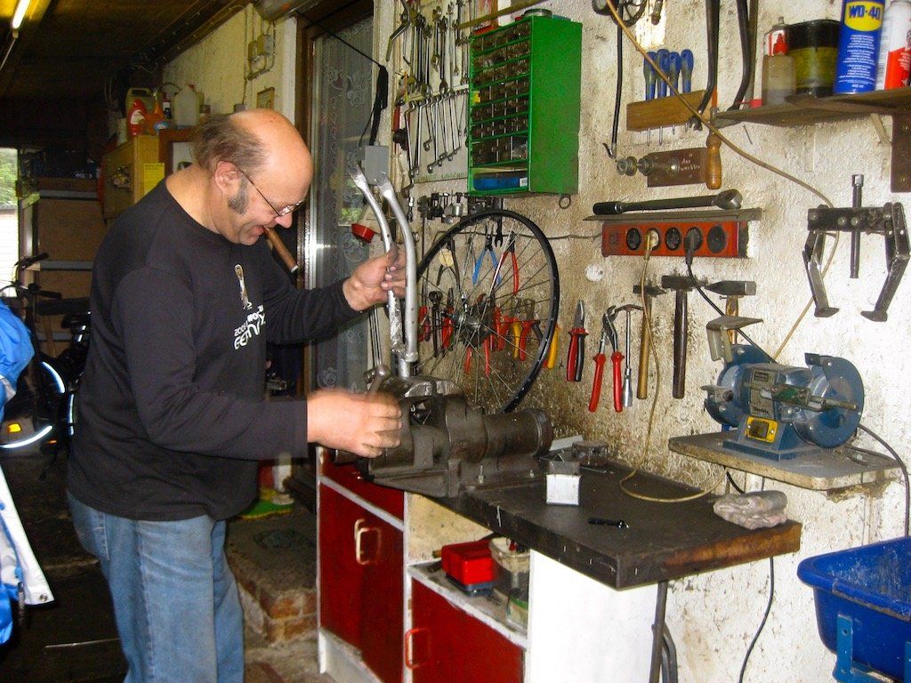 Nach dem Frühstück im Bahnhof brechen wir um 08.20 Uhr auf. Nach 5 Kilometern fängt es wieder an zu regnen. Wir fahren bis Mittags in Regensachen. Unterwegs ist mir am Rad eine Speiche gebrochen. Zum Glück entdecken wir unterwegs einen privaten Radmechaniker. Er stellt fest, dass sogar 2 Speichen hin sind. Beide hinten, also muß der Zahnkranz runter. Super nett der Mechaniker. Danke für die schnelle Hilfe.