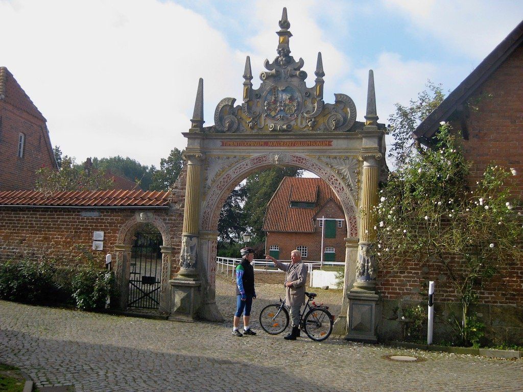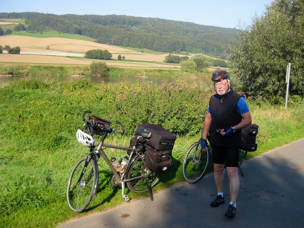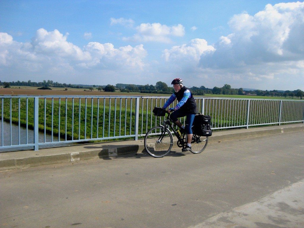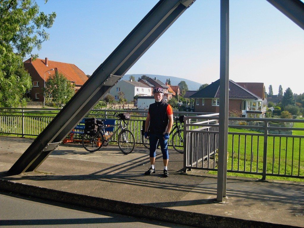 Um 08.30 Uhr gehts los. Die Fahrt verläuft ganz gut. Dann bricht mir wieder eine Speiche weg, also wieder zur Reparatur einen Fahrradladen aufgesucht. So ein Mist. Da ist irgenwas mit den Speichen los. Sie knallen in regelmäßigen Abständen durch. Zum Nachmittag hin hat Hans ein paar Probleme mit der Kraft. Zu wenig gegessen ? Wir suchen erst mal ein Cafe auf und machen eine größere Pause. Gegen 17.30 Uhr treffen wir in Porta Westfalica ein. Zum Abendessen geht es in die Burg - Schänke. Lecker !