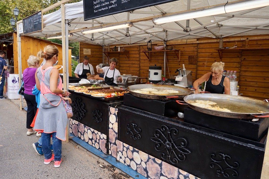 Danach geht es zur Prachtstraße von Budapest, der Andrassy Straße. Hier stehen die schönsten Gebäude von Budapest, auch wenn noch viel renoviert werden muss. Wir schauen uns die St. Stephans-Basilika an und laufen dann bis zum Heldenplatz. Das wohl bekannteste Schwimmbad Szechenyi am Heldenplatz wird gerade renoviert. Im Park am Heldenplatz ist gerade ein Volksfest mit vielen landestypischen Speisen.