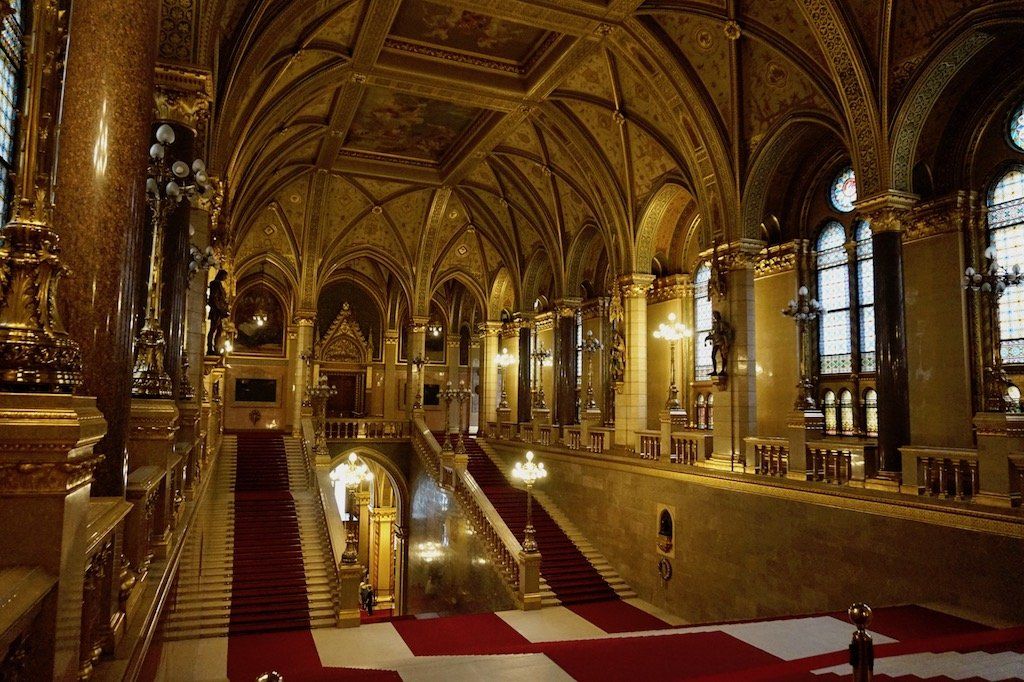 Wir machen uns auf den Weg über die Freiheitsbrücke zum Gallert Bad auf. Hier erfolgt eine kleine Besichtigung. Die Badekultur ist in Budapest auf Grund der Heilquellen stark ausgeprägt. Es gibt in der ganzen Stadt tolle alte Badehäuser. Danach begeben wir uns in die Fußgängerzone Vaci-utca in Richtung des Parlamentes. Hier haben wir für heute Mittag eine Besichtigung - Führung vorgebucht. Auf dem Weg dorthin fängt es wieder an zu regnen.