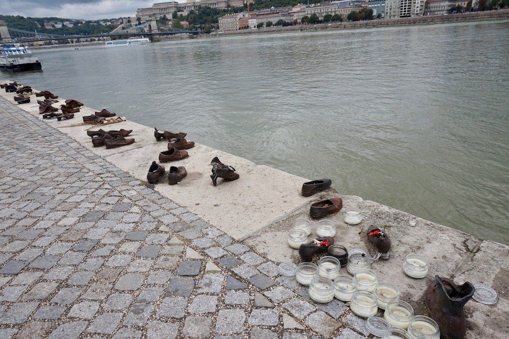 Jetzt geht es zum Holocaust - Mahnmal der zurückgelassenen Schuhe an der Donau bezüglich der Pogrome an den Juden. Dies befindet sich gegenüber vom Burgberg und der Fischerbastei an der Donau in der Nähe des Parlaments. Danach machen wir uns ins jüdische Viertel von Budapest auf und besuchen anschließen die Große Synagoge. Hier kommen wir noch in den Genuss eines jüdischen Konzertes, bevor wir uns zum Abendessen in der Nähe unseres Hotels auf den Weg machen. Unterwegs immer wieder Regen.