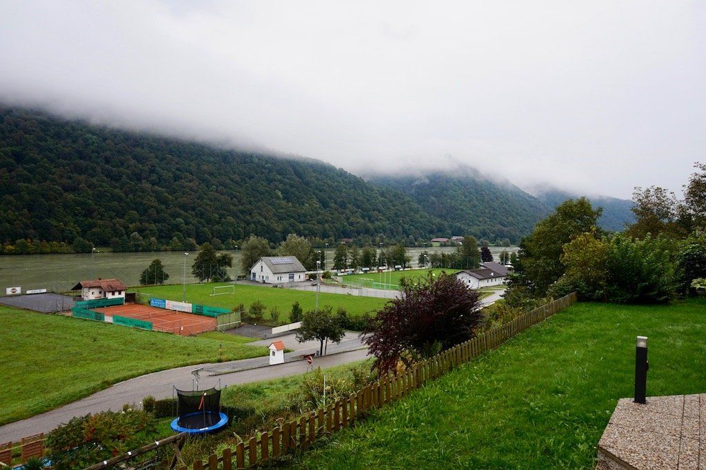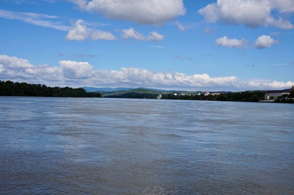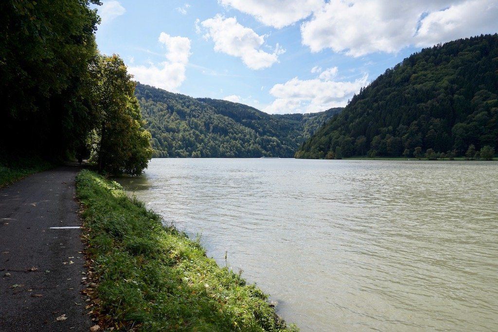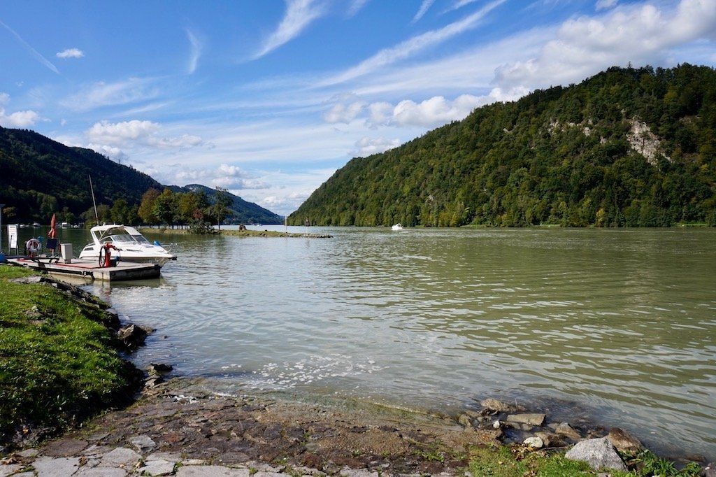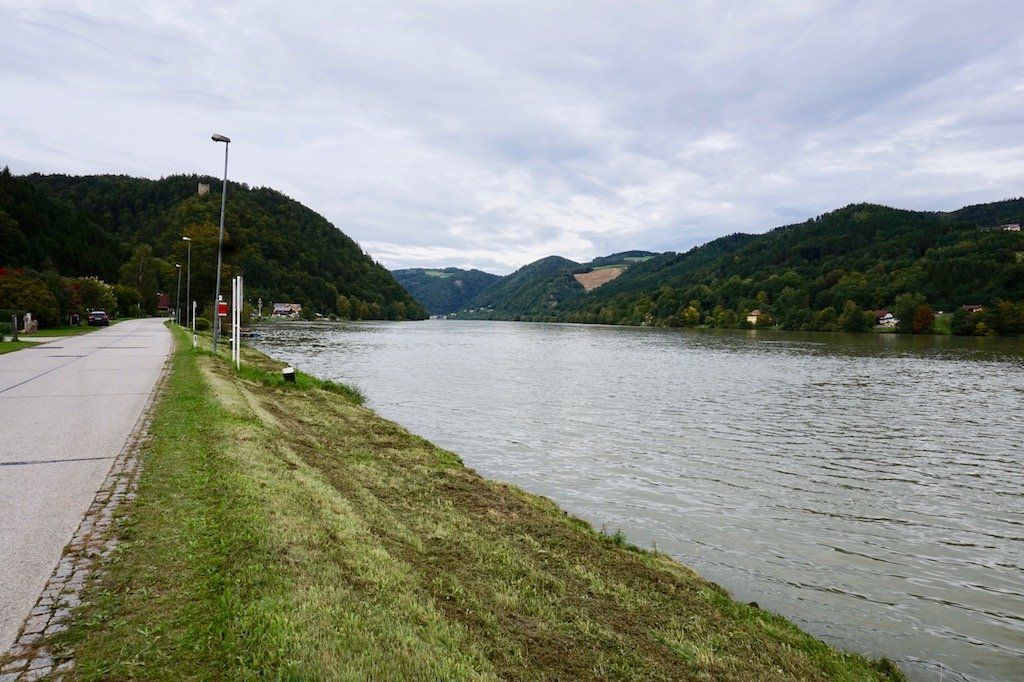 Das Wetter hat sich gebessert, es ist sonnig und trocken. Heute geht es unserer Meinung nach in den landschaftlichen schönsten Teil des Donauradweges, in ein enges Flusstal. Wir passieren die " Schlögener Schlinge ". Zu unserem Quartier " Pension Feiken " müssen wir noch einige Höhenmeter hinter uns bringen, dafür haben wir von der Terrasse aber einen herrlichen Blick auf die Donau. Zur Belohnung gibt es einen Wein auf der Terrasse, bevor es zum Abendessen ins Lokal " Schiffsmeister " geht.