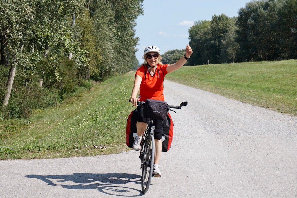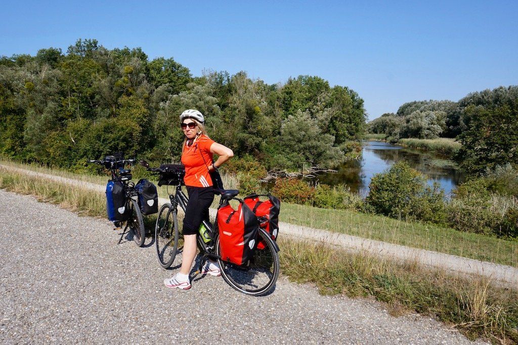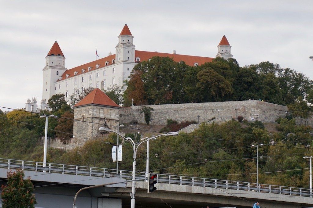 Wir stehen heute schon um 6.30 Uhr auf, da wir in die Hauptstadt der Slowakei, nach Bratislava wollen und der Weg weit ist. Wir haben eigentlich keine hohen Erwartungen an Bratislava, sollten aber angenehm überrascht werden. Frühstück gibt es für uns schon um 7 Uhr und wir unterhalten uns noch mit der netten Hotelangestellten, die fast perfektes Deutsch spricht. Um 8 Uhr verlassen wir Györ und es geht zurück zur Donau. Heute die erste Stunde erst einmal ohne Gegenwind, der kommt aber pünktlich um 9 Uhr zurück. Mittagspause machen wir noch vor der Donau in Mosonmagyarovar. Auch wenn man die Orte mit den Namen fast nicht aussprechen kann, so sind es meist doch schöne Örtchen. Im Ort Rajka radeln wir zurück auf den neuen Donaudamm. Wir verlassen Ungarn! Da wir ja in entgegengesetzter Richtung fahren, werden wir nicht Willkommen geheißen, sondern wir verabschieden uns. Ungarn hat uns richtig gut gefallen.