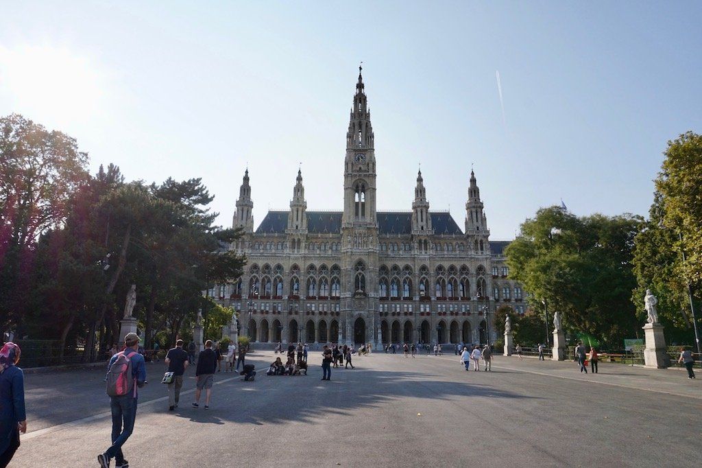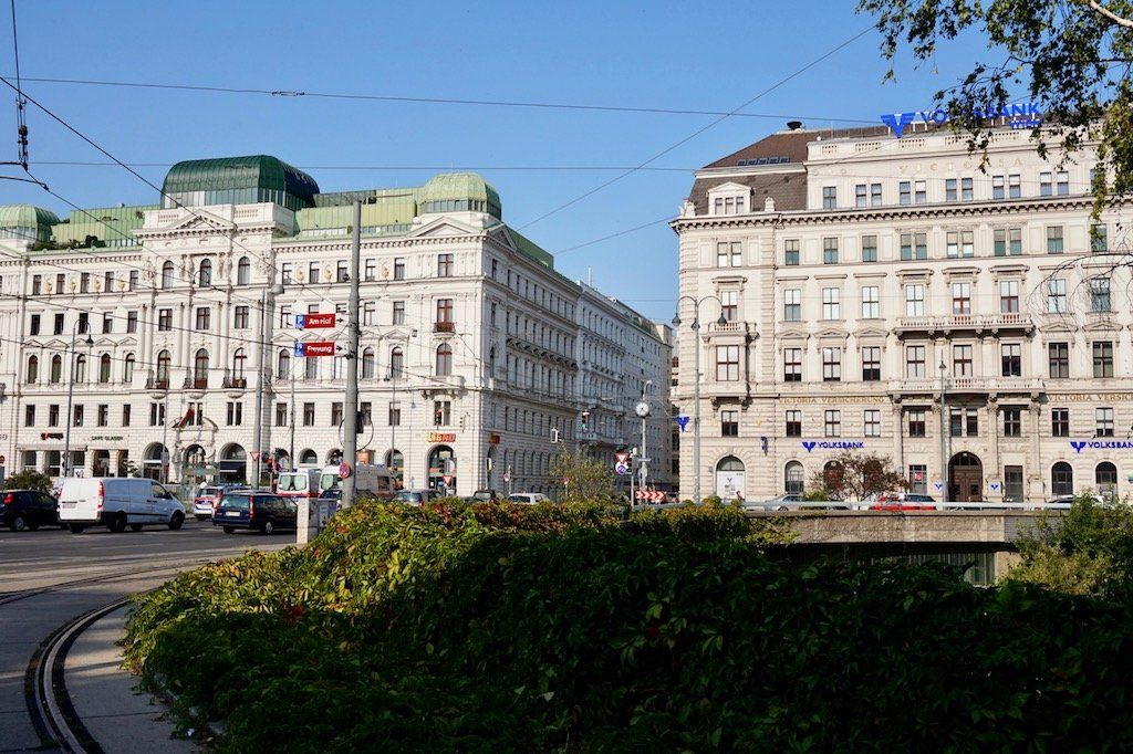 Wir fahren durch den Prater und am Riesenrad vorbei. Unser erster Eindruck von Wien ist enttäuschend. Dreckig, überall Graffiti, nicht toll. Wir hoffen, das es sich ändert. Vielleicht sind wir nur von der schlechtesten Seite angereist. Aber, für den 1. Eindruck gibt es keine 2. Chance. Durch das Navi finden wir unsere Unterkunft " Hey Mi " in einem alten Gründerzeithaus im 1. Bezirk fast sofort. Tolles altes restauriertes Haus mit riesigem Treppenhaus. Unser Appartement liegt im 5. Stockwerk, es gibt keinen Fahrstuhl und die Zimmer haben hohe Decken. 5 Stockwerke sind hier ganz schön hoch und das ganze Gepäck muss jetzt nach oben. Es lohnt sich trotzdem, wir haben für 3 Nächte in Wien gebucht. Die Räder können wir verschlossen im Hinterhof abstellen. Wir machen uns zu einer ersten Stadtbesichtigung auf. Der erste schlechte Eindruck von Wien relativiert sich. Zumindest der Innenstadtbereich ist sehr schön. Tolle alte Gebäude, die Wiener sind schon anders als die anderen Österreicher. Abendessen in dem kleinen Restaurant "Pöschel ".