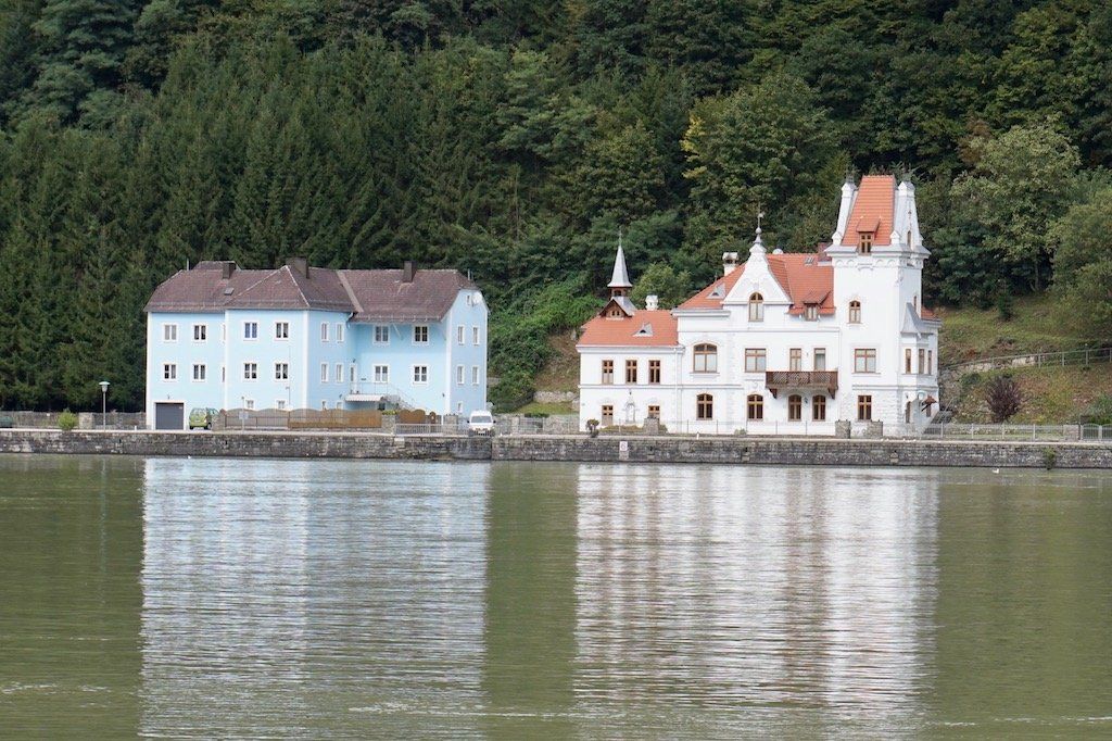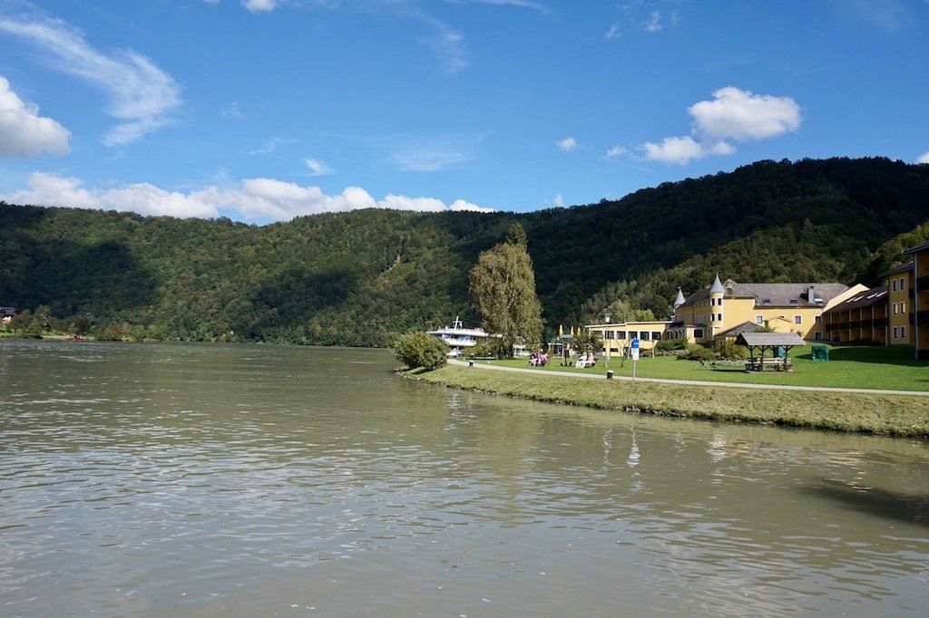 Wir müssen heute wieder auf die andere Donauseite. Zunächst finden wir den Weg auf den Donauradweg nicht, verfahren uns und sind auf einmal wieder am Stift Melk. Zurück in die Stadt, wir hatten einen Abzweig übersehen. Jetzt sind wir wieder auf dem richtigen Weg. Der Donauradweg führt jetzt immer wieder nah an der Donau entlang, unterwegs schöne malerische Orte und Ausblicke. Um 15 Uhr kommen wir in Wallsee an. In den Ort geht es von der Donau aus steil nach oben. Wir müssen noch einmal kräftig in die Pedale treten. Wir haben ein Zimmer im Landgasthof " Sengstbratl " gebucht. Just bei der Ankunft setzt der Regen wieder ein, noch einmal Glück gehabt. Im Landgasthof ist eine Tanzveranstaltung für die reifere Jugend. Interessant zuzuschauen. Vor dem Abendessen geht es jetzt bei nachlassendem Regen noch eine Runde durch den Ort. Wie in so vielen kleinen Örtchen ein nettes Schloss.