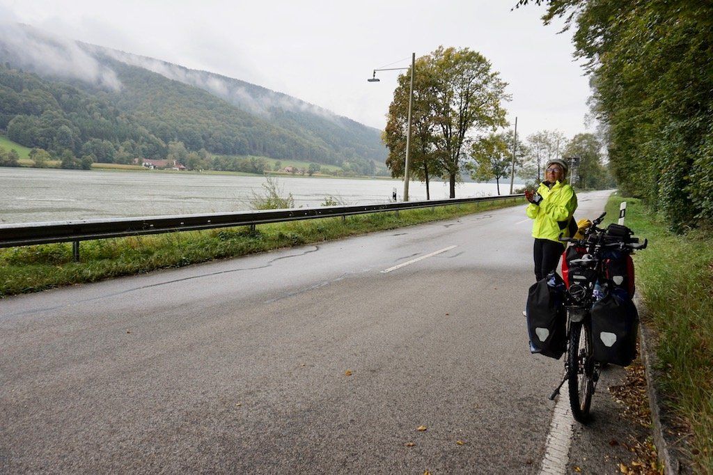 Frühstück machen wir im Appartement selber. Jetzt heißt es die ganzen Sachen aus dem 5.Stock wieder nach unten bringen und dann wieder auf die Räder. Der Radweg aus Wien heraus an der Donau entlang ist super. Die Mittagsrast machen wir in Tulln. In Zwentendorf sind wir schon um 12.45 Uhr. Unsere Vermieterin ist ganz erstaunt, dass wir schon da sind. Ich fahre noch schnell in den Nachbarort, mal schauen ob ein Restaurant geöffnet hat. Negativ, Montags haben fast immer alle zu. Es bleibt wohl nur der Dönerladen, der hat die ganze Woche auf. Es regnet wieder. Wie gut das wir so früh da waren, so sind wir wenigstens nicht unterwegs nass geworden. Nachmittags geht es erst einmal ins Café, das hat zum Glück auf, bevor es am Abend wirklich in den Dönerladen geht, es war aber lecker. Es regnet jetzt in strömen. Hoffentlich ist morgen besseres Wetter.