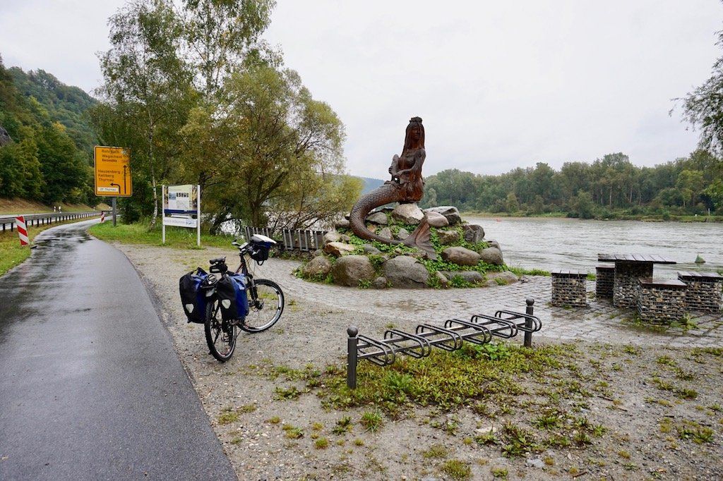 Das Wetter hat sich wieder verschlechtert. Nebel und Nieselregen. Wir brechen heute zu unserer letzten Etappe nach Passau auf. Nach Auskunft unseres Vermieters sollen wir die Donauseite wechseln, da auf hiesiger Seite eine Baustelle ist, da würden wir nicht weiter kommen. Danke für den Tipp. Den genauen Einstieg auf der anderen Seite in den Donauradweg verpassen wir, es geht erst einmal ein paar hundert Meter den Berg hoch, bis wir merken, das wir uns offensichtlich verfahren haben. Wieder zurück, wir haben das Schild des Radweges übersehen, jetzt sind wir aber richtig, es geht parallel der Donau entlang. Nach einer halben Stunde geht der Nieselren in richtigen Regen über. Eine kurze Pause unter einem Baum, es hört aber nicht auf. Was soll´s, den Rest schaffen wir auch im Regen. Wir passieren dann die Grenze nach Deutschland und sind auch schon fast in Passau. Da unser Quartier, " Pension Gambrinus ", gebucht für 2 Tage, auf der anderen Donauseite liegt, müssen wir durch die Altstadt. Diese ist mit Kopfsteinpflaster ausgelegt. Es ist auf Grund des Regens richtig rutschig, wir müssen höllisch aufpassen das wir mit den Rädern und dem Gepäck nicht stürzen. Unterwegs noch schnell in eine Bäckerei um für nachher im Quartier etwas zum Kaffee zu haben. Am Quartier, das liegt ca. 5 Kilometer außerhalb von Passau, treffen wir um 13.30 Uhr ein. Wir haben bis hierher etwas mehr als 750 Kilometer hinter uns gebracht. Super ! Am Nachmittag geht es mit dem Bus nach Passau zu einer ersten Besichtigung. Am Bahnhof schauen wir schon einmal nach, wie wir übermorgen mit den Rädern zum Bahnsteig kommen. Eine Katastrophe. Aufzug kaputt. Wir entschließen uns, übermorgen rechtzeitig loszufahren. Abendessen gibt es in der Altstadt im griechischen Restaurant Rhodos, das war gut.