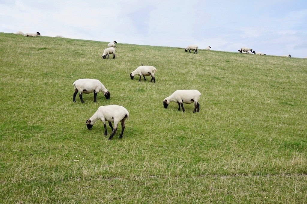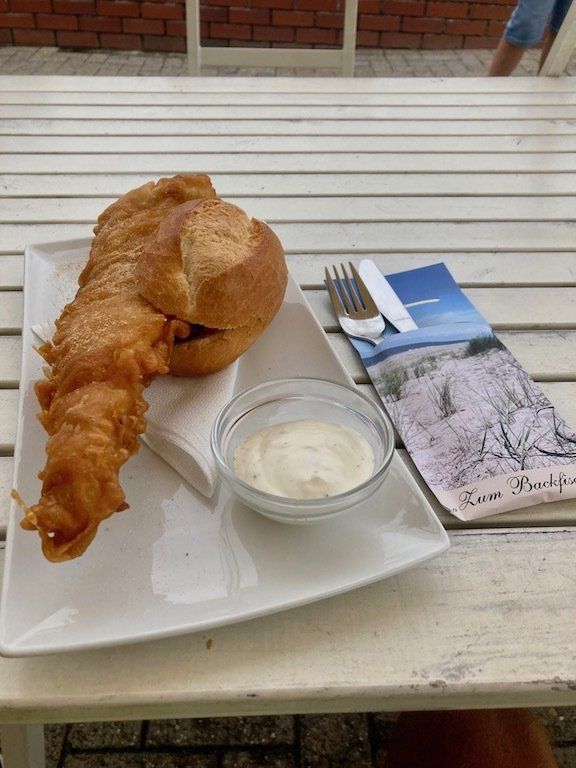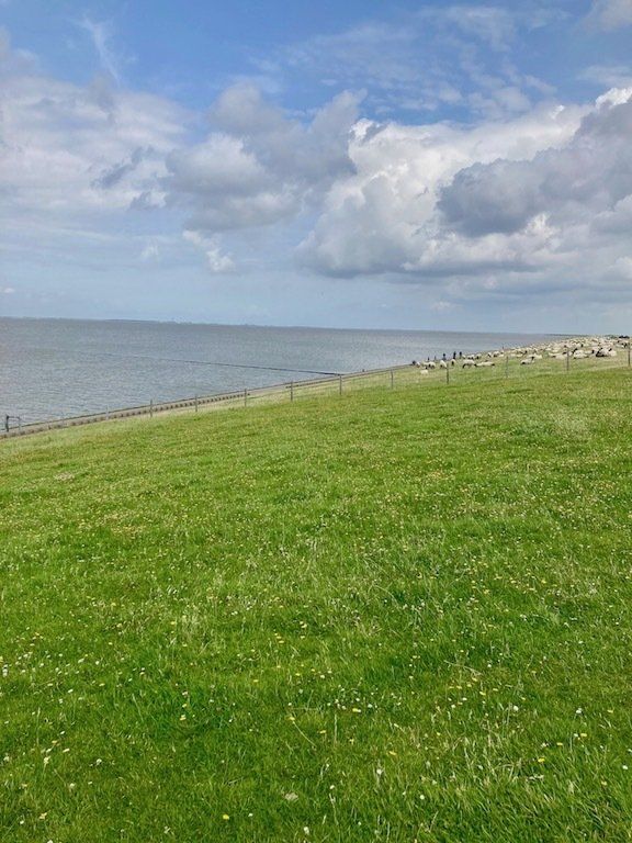 Wenn man schon an der Küste ist, gibt es erst einmal ein leckeres Fischbrötchen zur Stärkung. Soviel Zeit muss sein. Dann mal kurz auf den Deich um zu schauen ob das Meer auch da ist. Zuvor aber den Deichrasenmähern ausweichen.