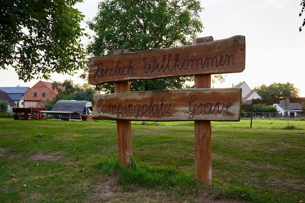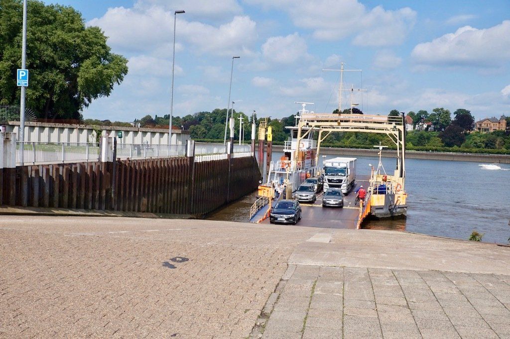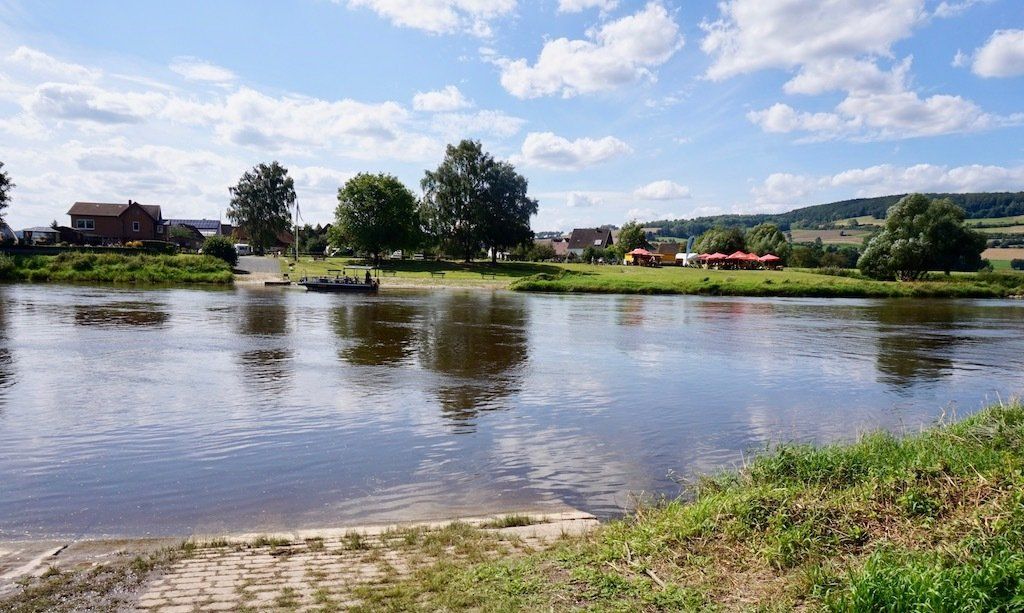 Wir machen uns wieder auf zu unserem heutigen Etappenziel Grave. Hier befindet sich ein kleiner Bauerncampingplatz. Dazu müssen wir allerdings auf die andere Weserseite mit einer Radfähre übersetzen.