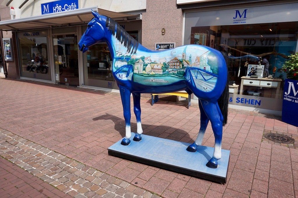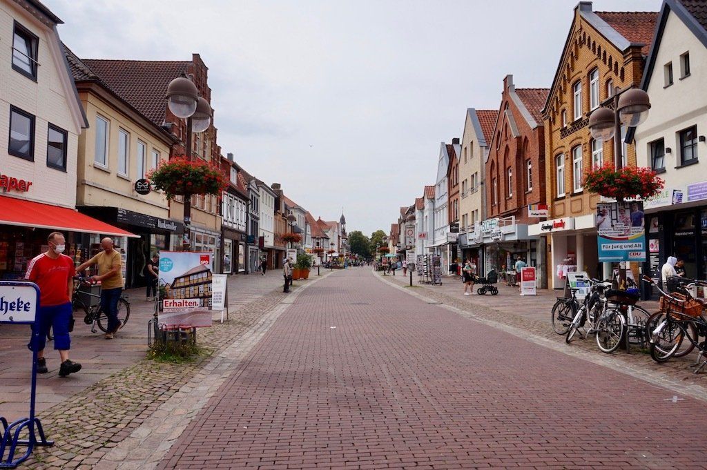 Der Regenschauer dauerte gut eine halbe Stunde. Gegen 11 Uhr erreichen wir Jever. Netter kleiner Ort mit großer Brauerei. Die Sonne ist in der Zwischenzeit auch rausgekommen. In der Fußgängerzone gönnen wir uns erst einmal ein richtiges Frühstück und genießen den Sonnenschein.