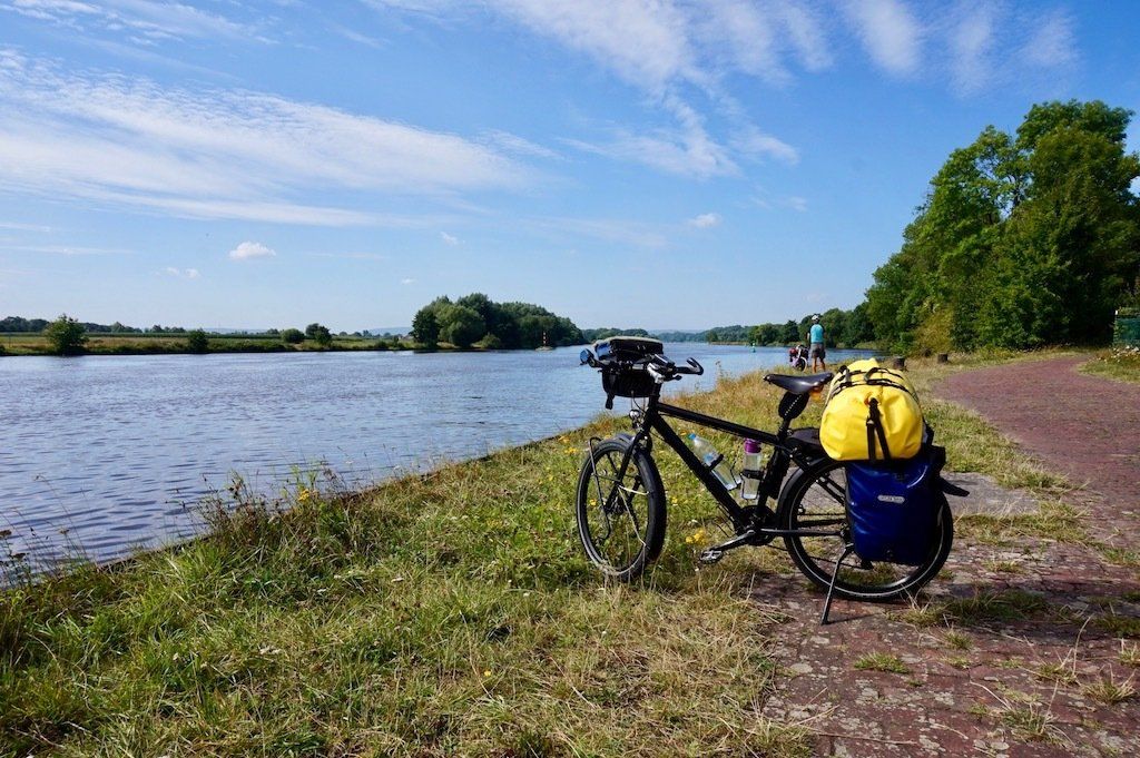 Nachdem wir uns die Bremer Innenstadt ausgiebig angeschaut haben, geht's zurück auf dem Weserradweg. Eine kleine Mittagspause machen wir dann in Riede, bevor wir in Thedinghausen in einem Supermarkt unsere Vorräte wieder auffüllen.