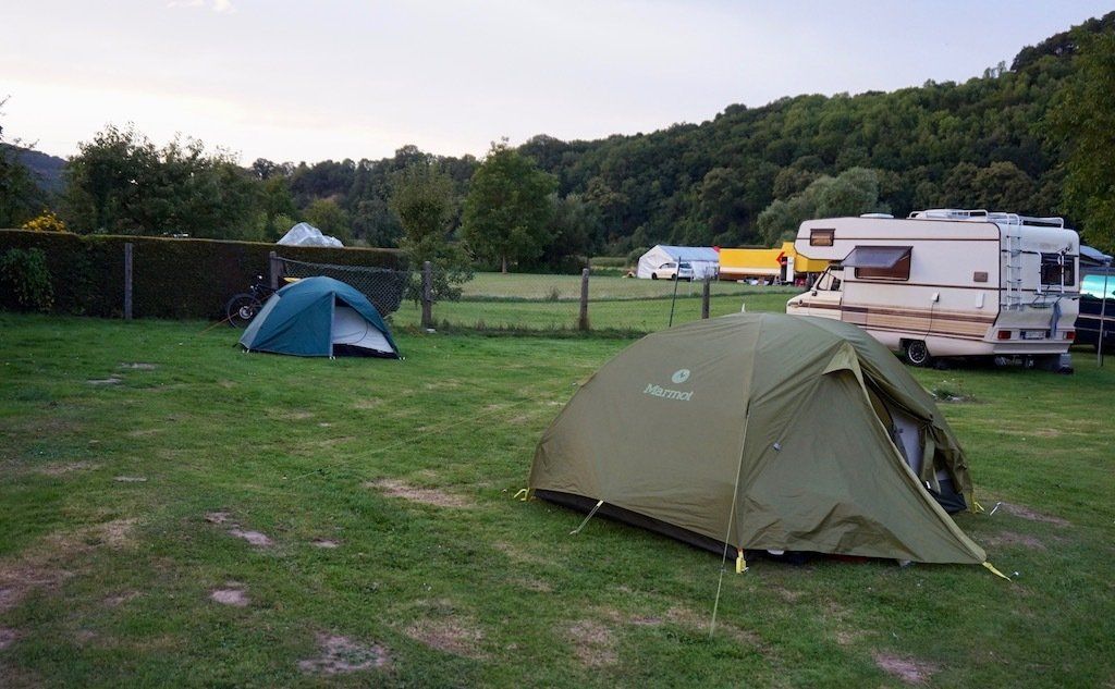 Gegen 16.30 Uhr erreichen wir dann unseren Campingplatz in Eitzendorf am See. Ein Tisch und eine Bank sind vor Ort, das Zelt steht recht schnell. Da die Gastronomie im Ort sowie auf dem Campingplatz nicht geöffnet hat, machen wir das Abendessen einmal selber. Da es heute Abend zum ersten Mal richtig schön war ist, können wir noch lange draußen sitzen und quatschen.