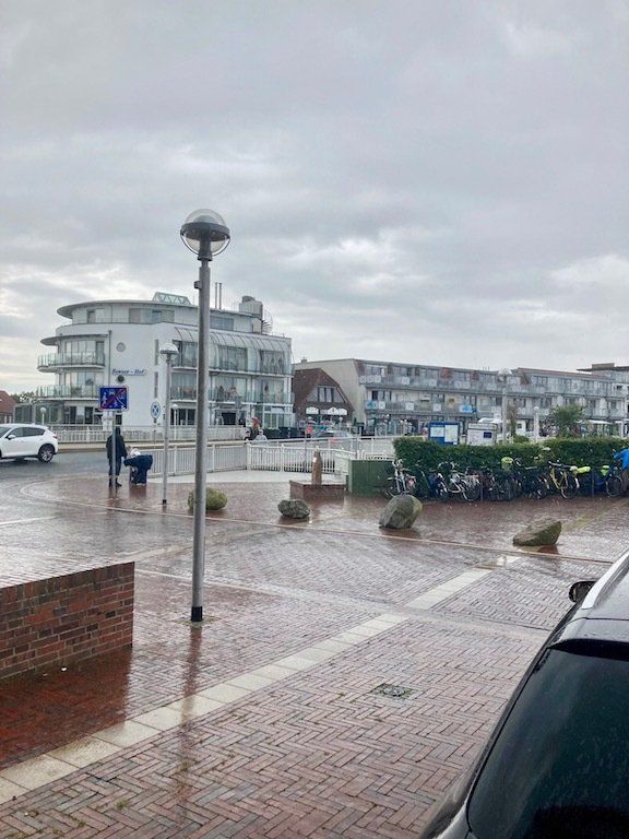 Als ich gerade in Bensersiel bin macht der Himmel alle Schleusen auf und ein heftiger Regenschauer kommt runter. Zum Glück kann ich mich unterstellen und den Schauer abwarten.
