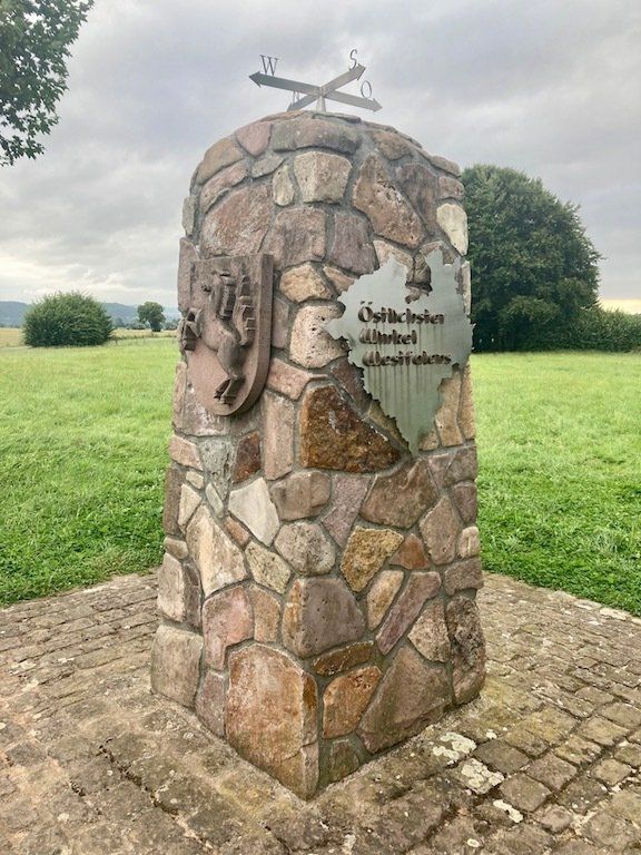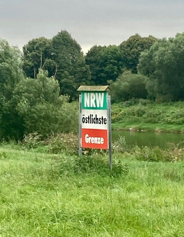 Der Wind hat noch mehr aufgefrischt und weht uns nun schon fast sturmartig entgegen. Unterwegs passieren wir die Landesgrenze von Niedersachen nach NRW. Wir befinden uns laut Grenzstein am östlichsten Punkt in NRW.