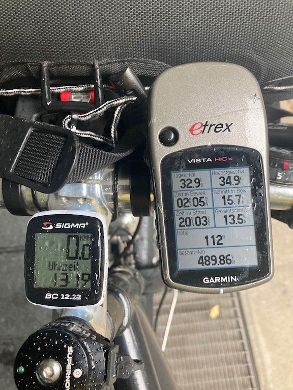 Zwei Mal umgestiegen und gegen 13 Uhr erreiche ich Dortmund. Natürlich ist am Bahnsteig keine Rolltreppe oder ein Aufzug. Das Rad mit dem Gepäck über die Treppe nach unten zu bringen macht nicht richtig Spaß, es klappt aber doch. Raus aus dem Bahnhof, es regnet in strömen. Bis nach Hause werde ich noch einmal richtig naß. Jetzt erst einmal alle Sachen säubern und trocknen.